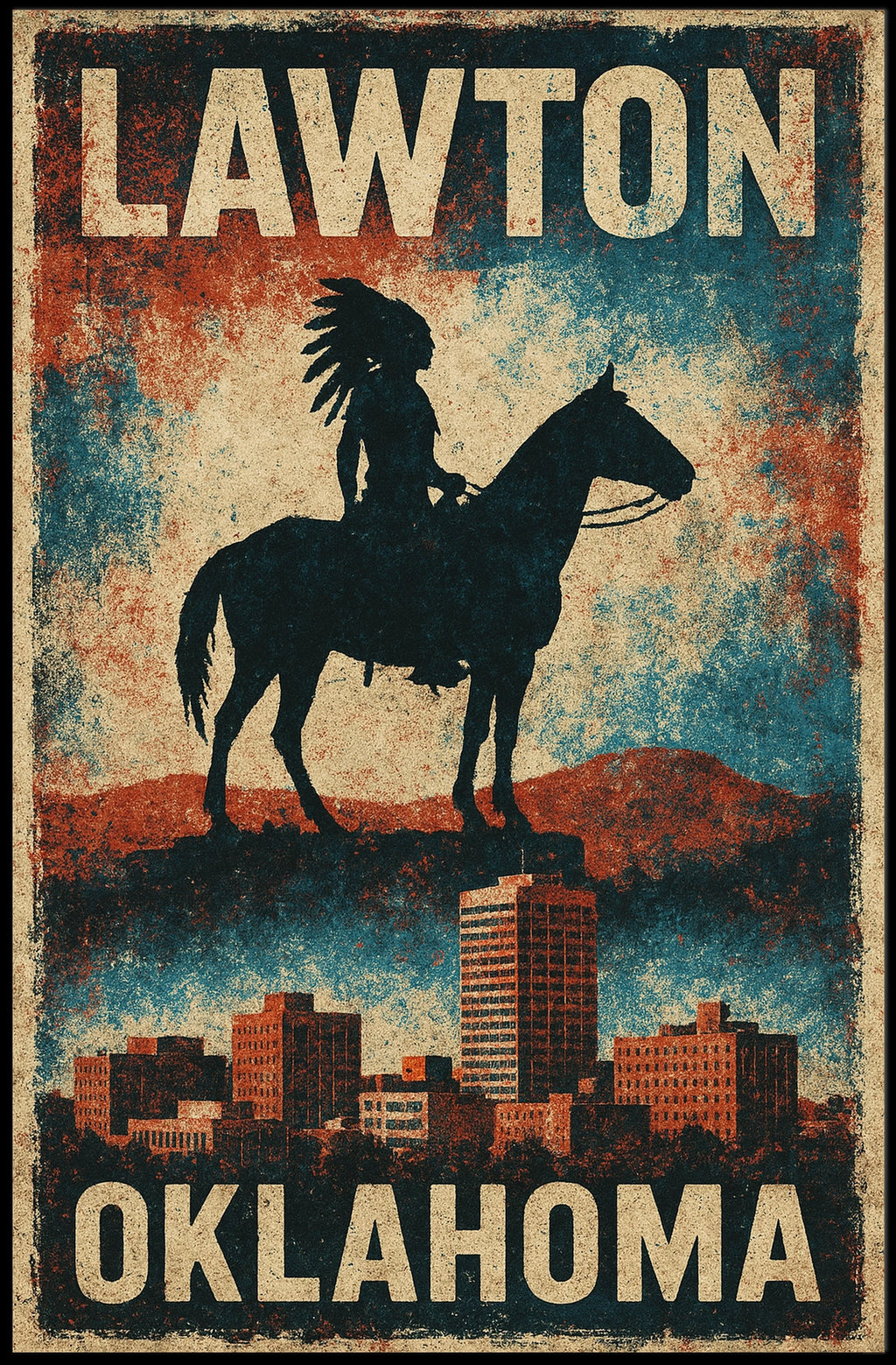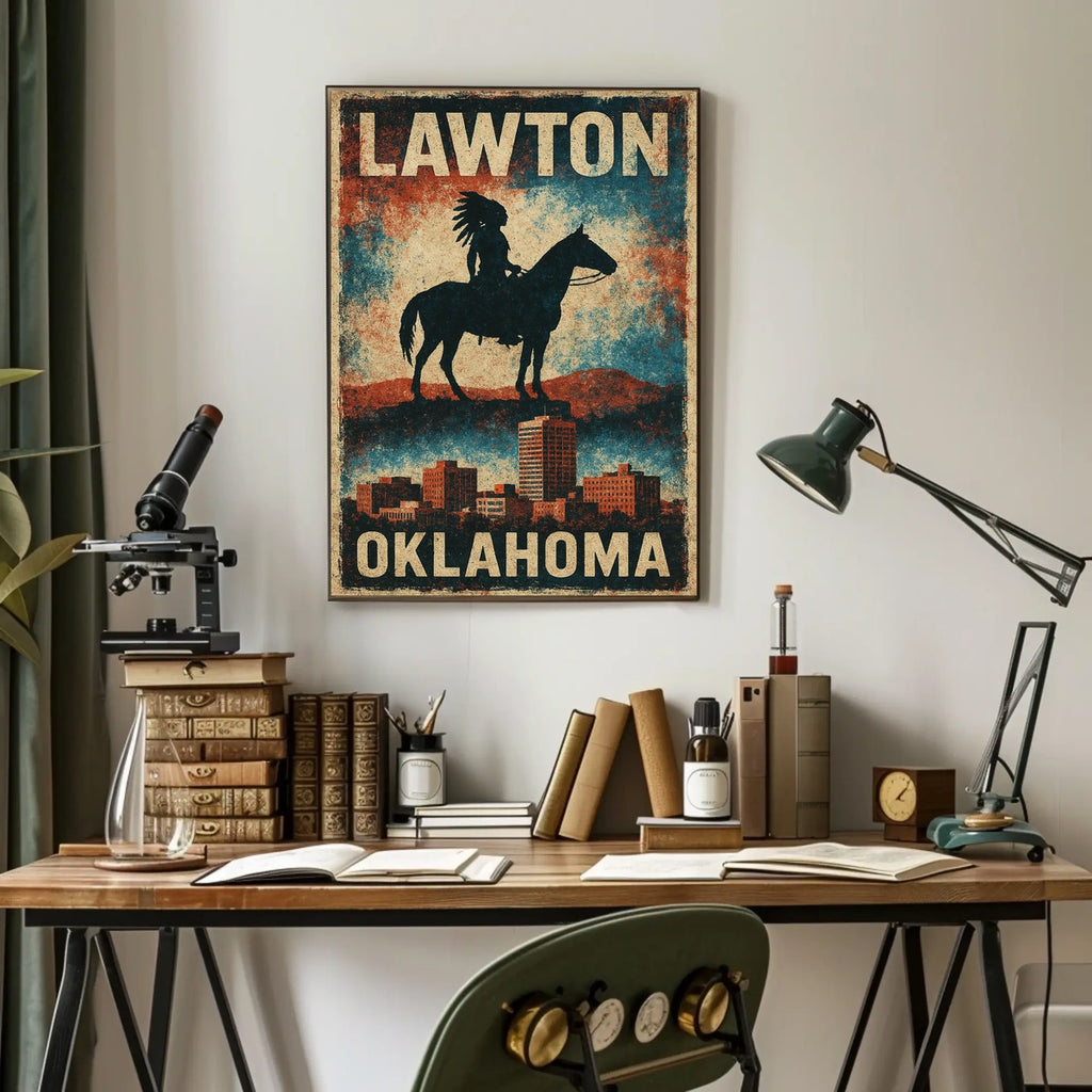 Vintage Lawton Oklahoma Cityscape Cultural or Heritage Poster