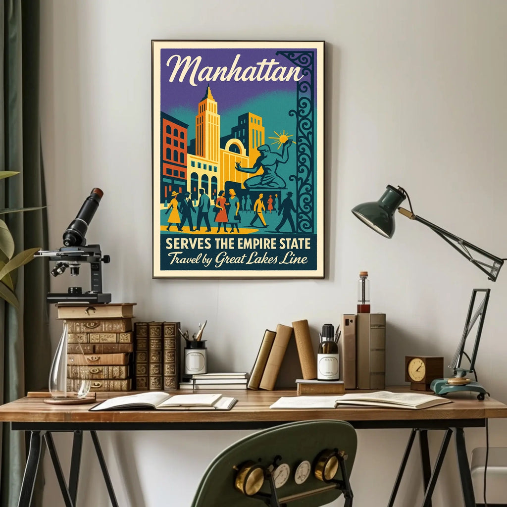 This vintage travel poster is more than wall art—it embodies Manhattan’s enduring energy, bold color, and storytelling charm. Add it to your space to spark dialogue, celebrate iconic architecture, and invite daily inspiration. Shop now to elevate your decor.