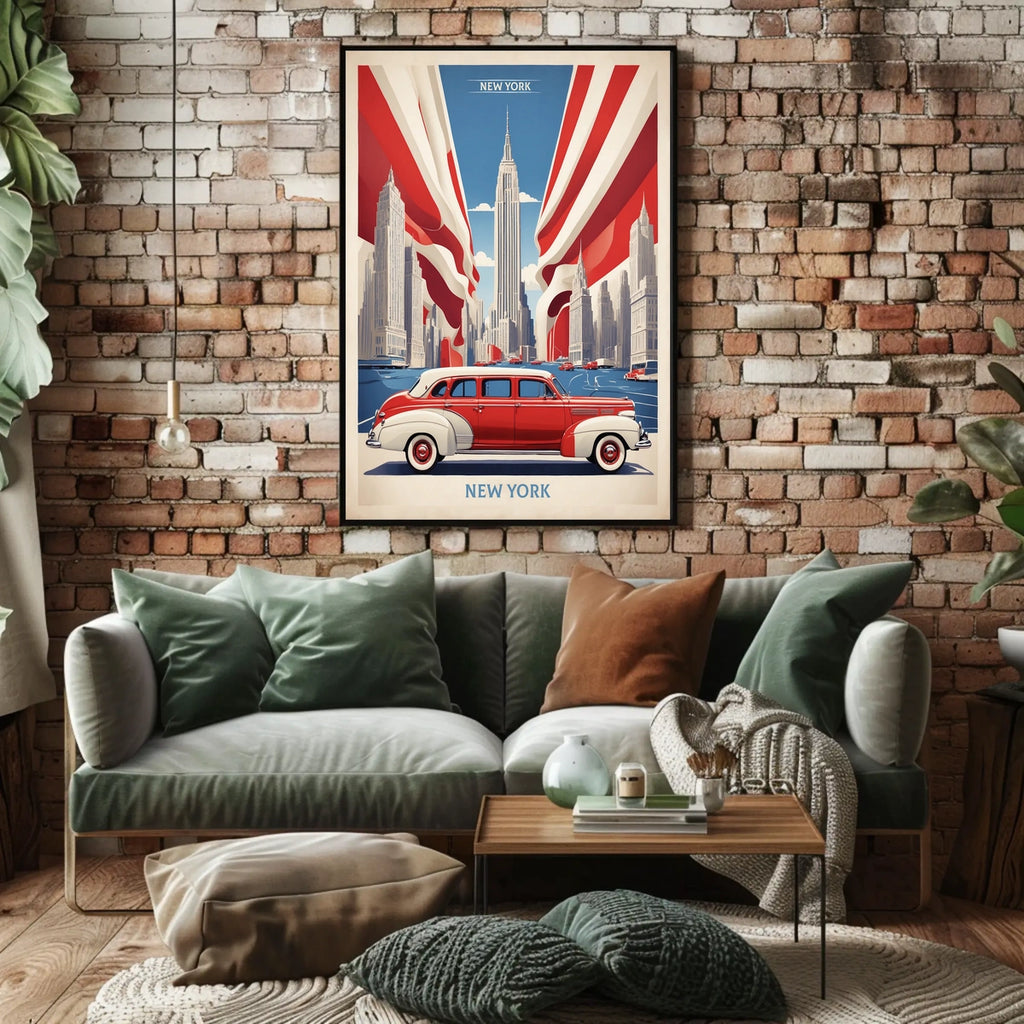 This vintage New York City car art poster brings timeless charm, bold character, and instant mood uplift to your space. Easy to frame and giftable for fans of retro cityscapes. Shop now to elevate your walls with classic New York nostalgia.