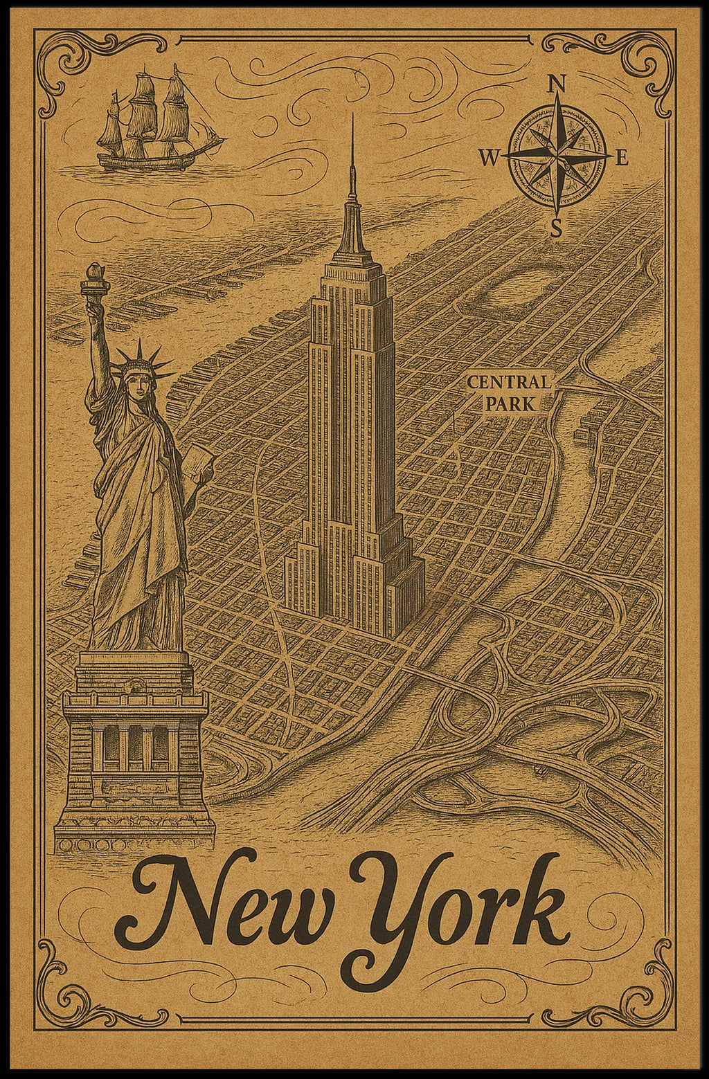 Transport yourself to a bygone era with this Vintage New York City Urban or Cityscape Poster. Rendered in an engraved, sepia-toned style, it captures the city’s sculpted skyline and timeless energy. The poster’s nostalgic charm makes a bold statement in any room, while celebrating iconic landmarks and urban exploration that define New York.