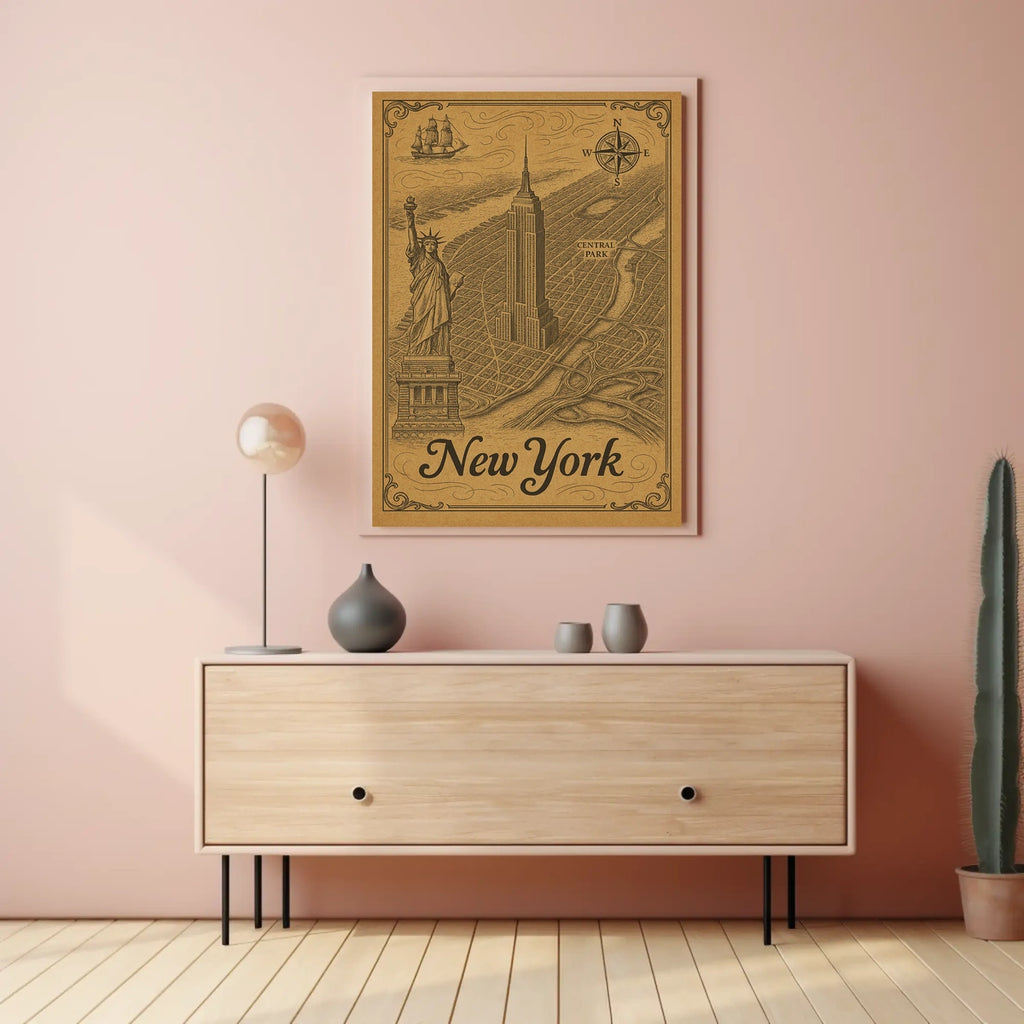 - Empire State Building silhouette within a classic skyline—Evokes timeless NYC pride and adds a museum-grade atmosphere.