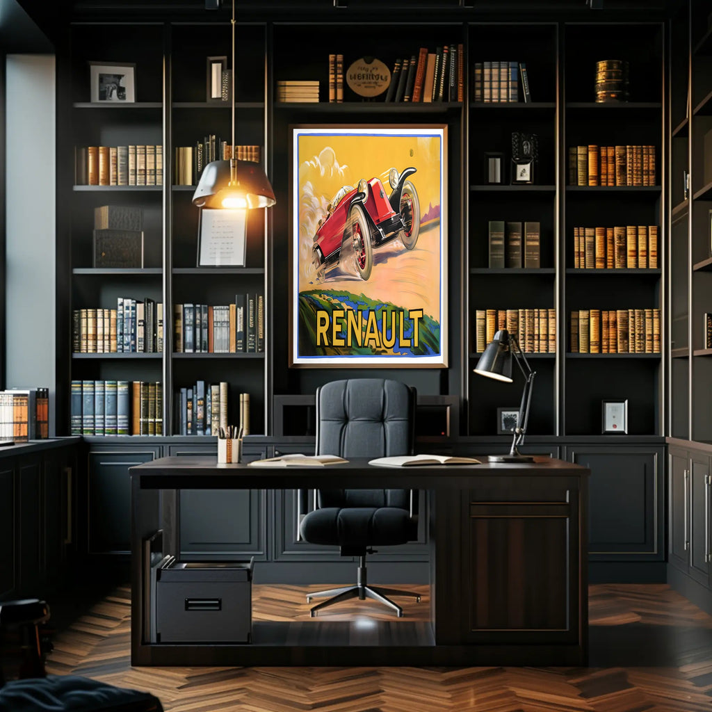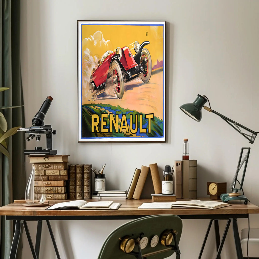 Add a touch of vintage speed and wanderlust to your walls with PosterGoat’s Vintage Renault Car Advertisement Poster — order now and transform your space with classic automotive flair.