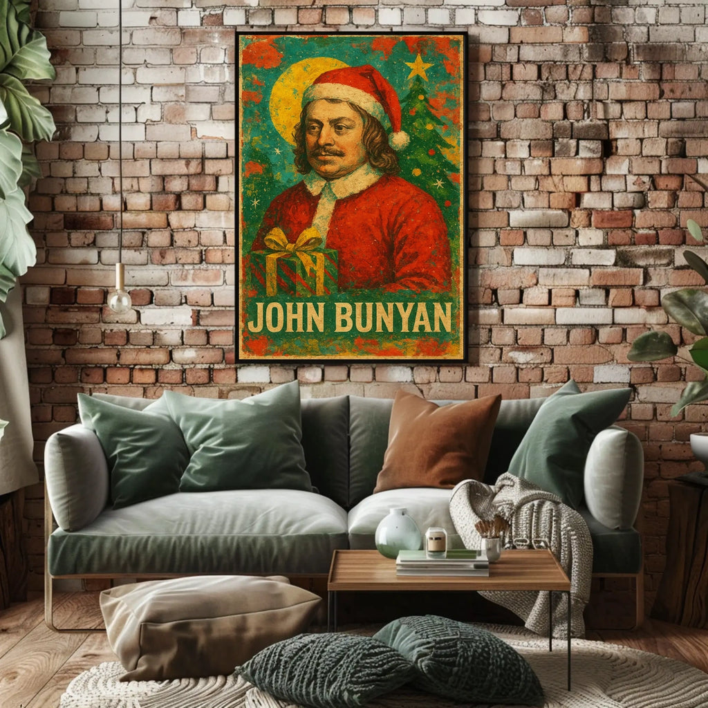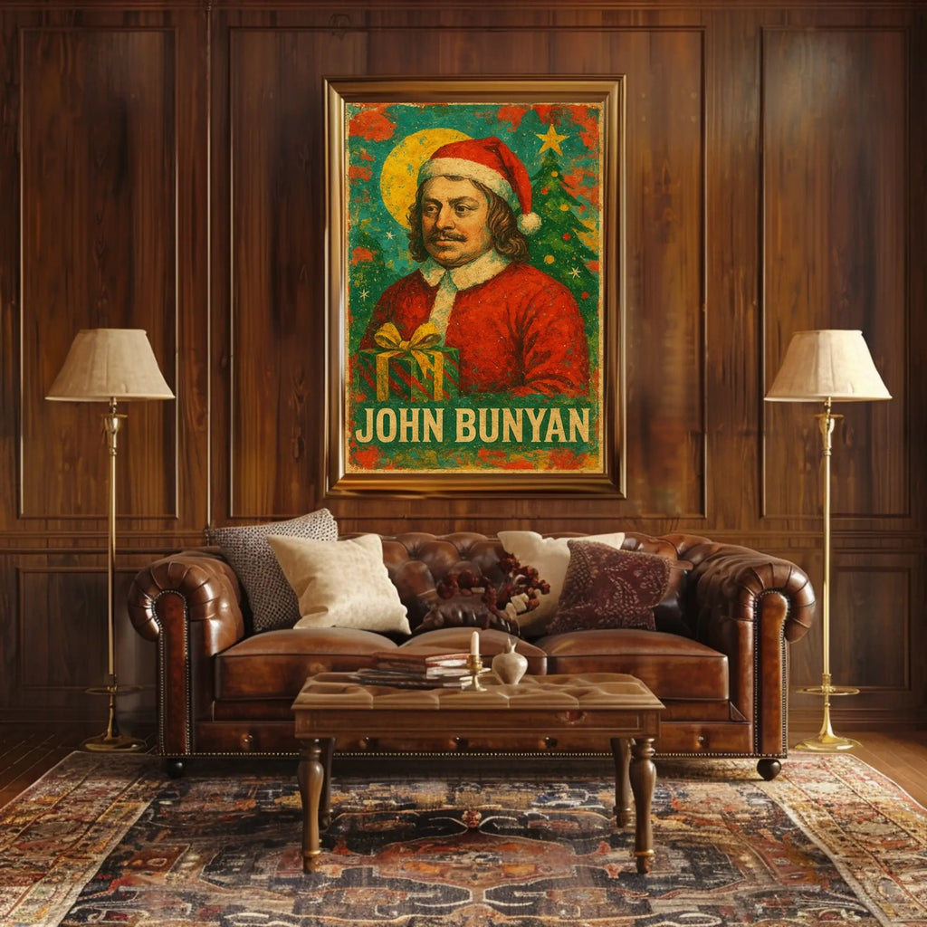 Dive into nostalgia with this vintage Christmas cultural poster featuring a historical figure channeling the timeless charm of Santa Claus. The scene captures the vibrant spirit of the holiday season, complete with a regal red coat, traditional Santa hat, and a gift that promises hidden treasures. The beautifully crafted green and yellow wrapping enhances the artwork’s festive allure, providing an inviting warmth to any space.