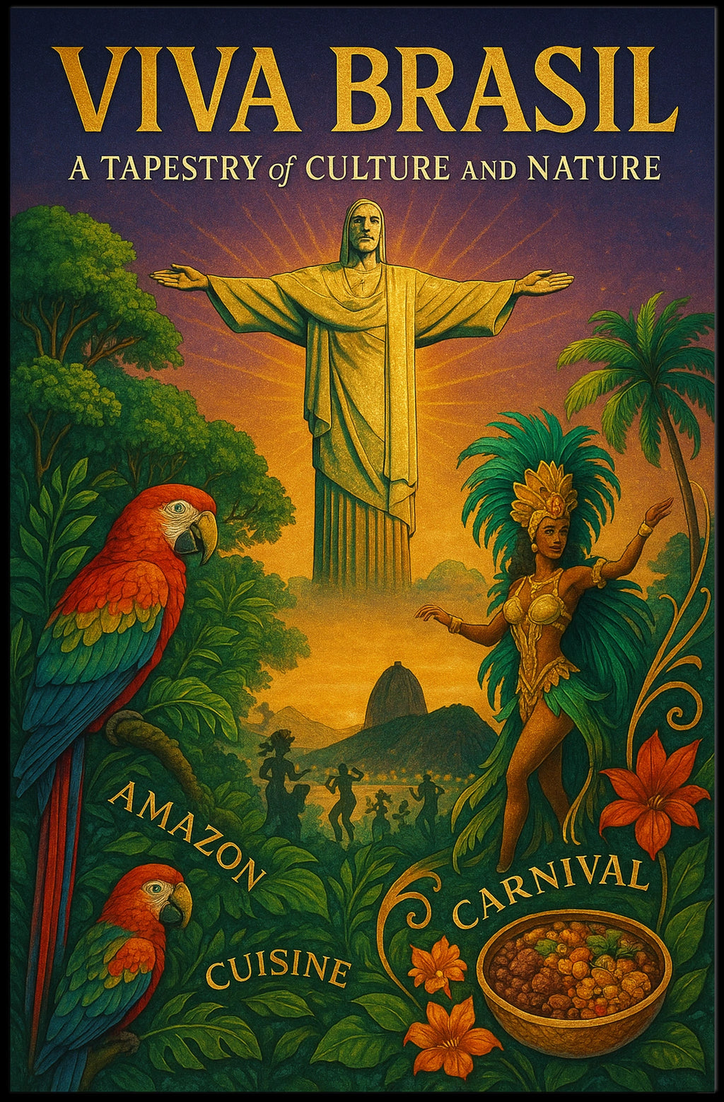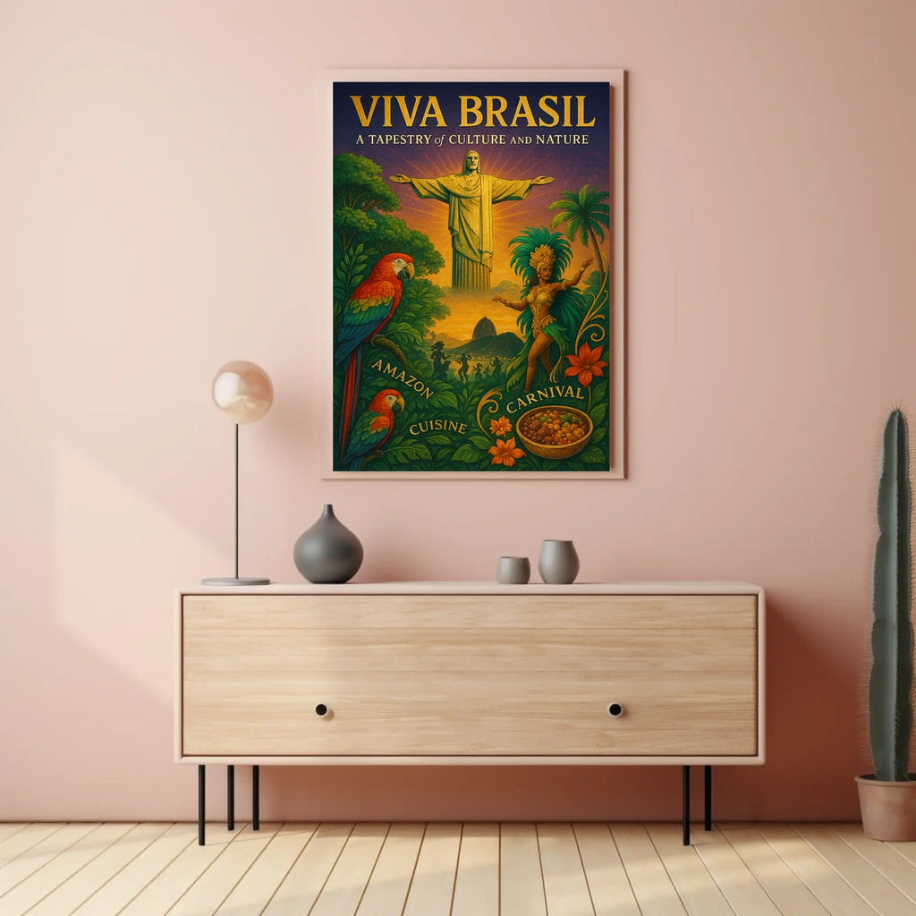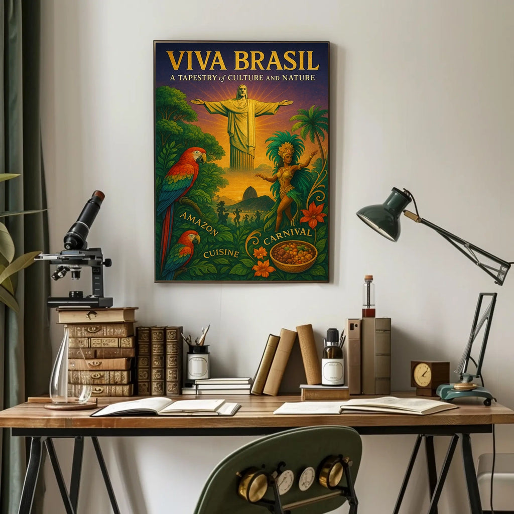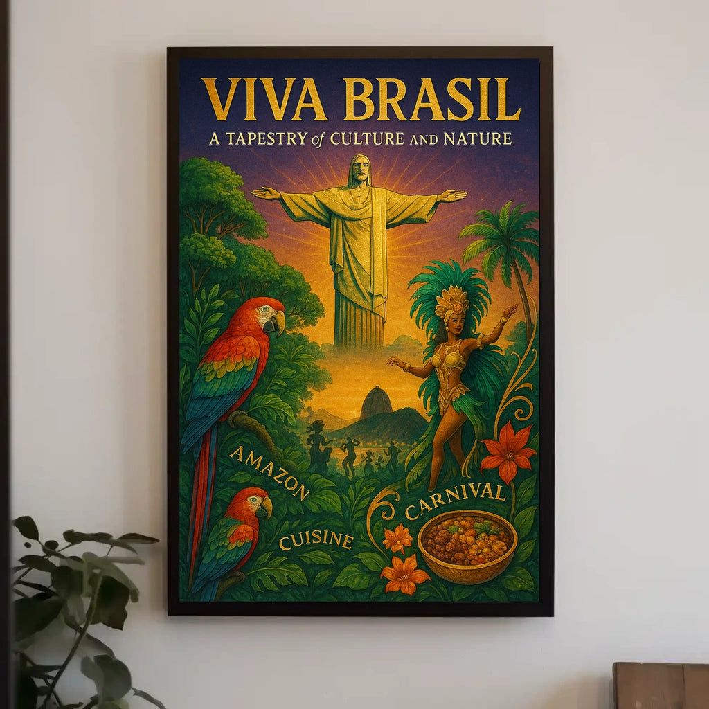 Intro: Transform your space with a Brazil-inspired tapestry of culture and nature. This poster blends vibrant streets, lush landscapes, and timeless traditions into a single, wall-worthy piece that appeals to decor lovers and wanderlust spirits alike, and is perfect for bold gallery walls.