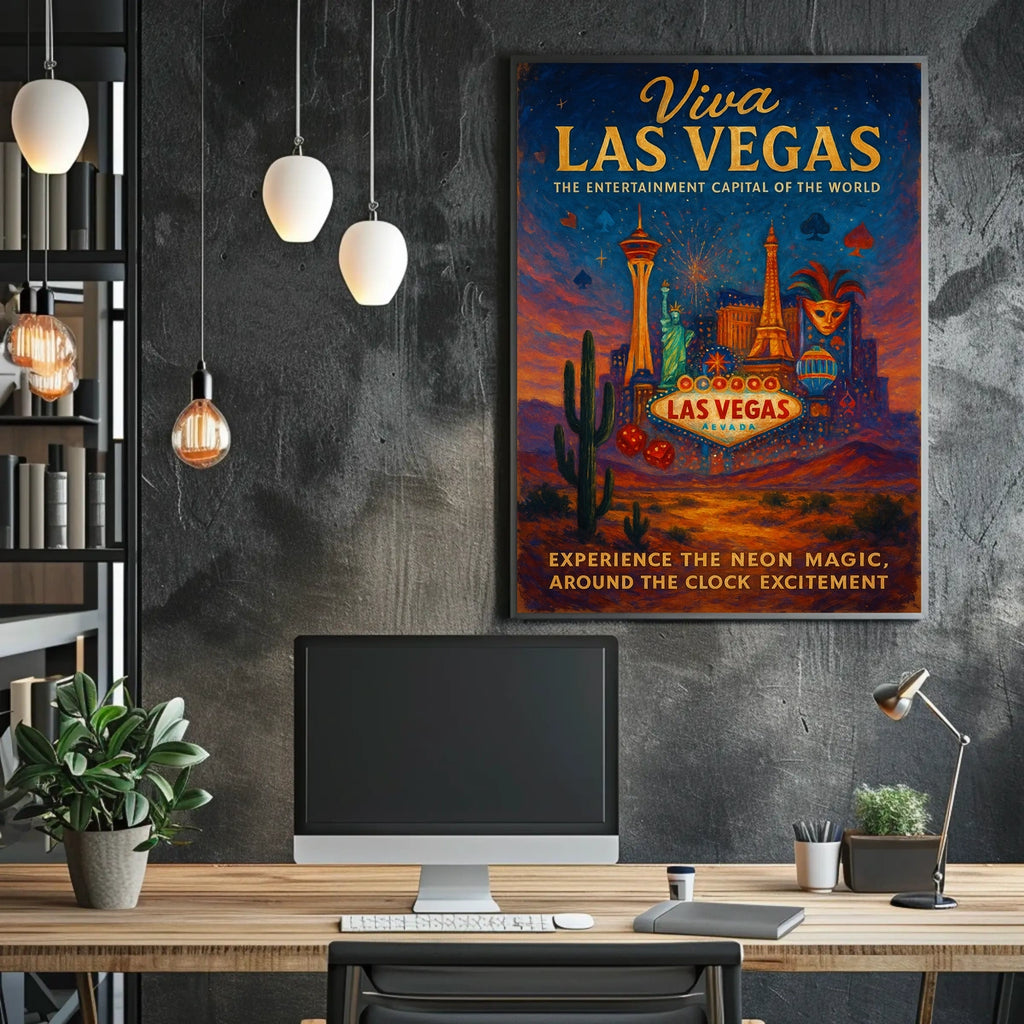 Step into the neon glamour of Viva Las Vegas, a celebration of Adventure and nonstop travel energy. This vivid homage to the Entertainment Capital of the World captures the neon lights, high-energy nightlife, and endless entertainment that draw travelers from around the globe.