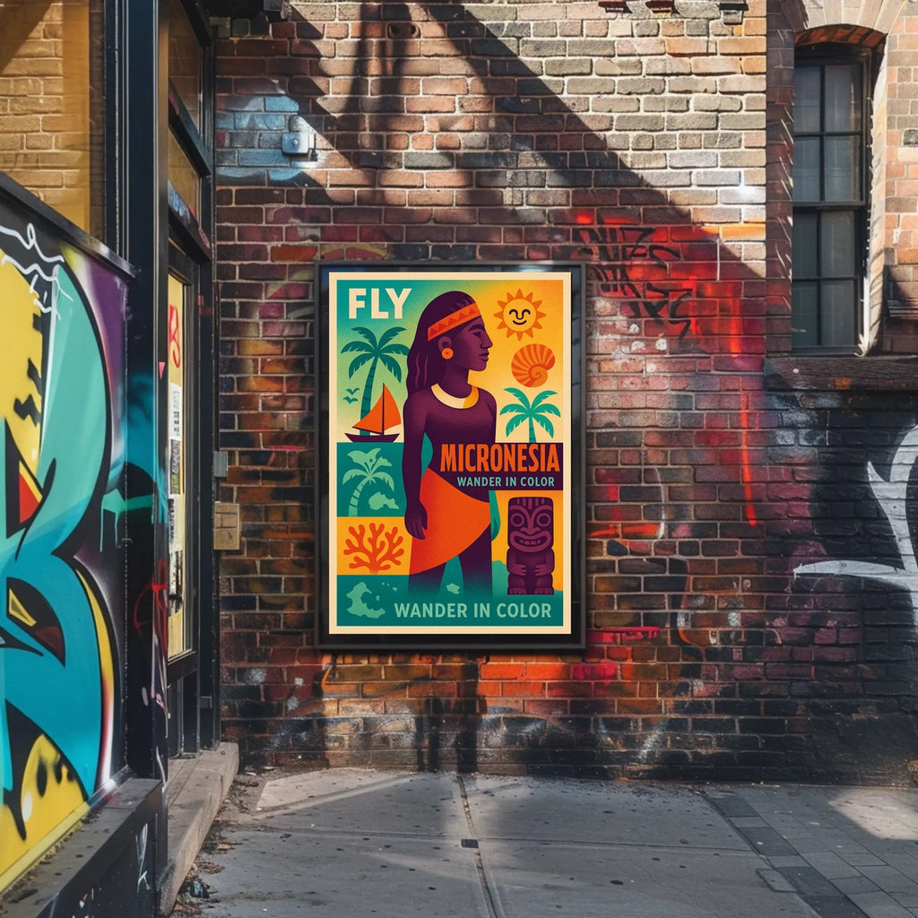 Turn any wall into a little travel moment with the Wander in Color Micronesia poster—an eye-catching wall art piece. This art print blends watercolor softness with a digital painting edge, creating a colorful scene inspired by Micronesia's scenic charms. It's a friendly, low-fuss way to refresh a room and spark a bit of wanderlust without leaving home.