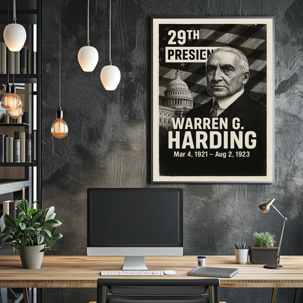 Printed with precision and made to inspire, this artwork is more than decoration—it’s a conversation piece that connects history, culture, and style. Bring Warren G. Harding 29th President of the United States Digital Montaje Poster into your home, classroom, or office today and let your walls tell a powerful story.