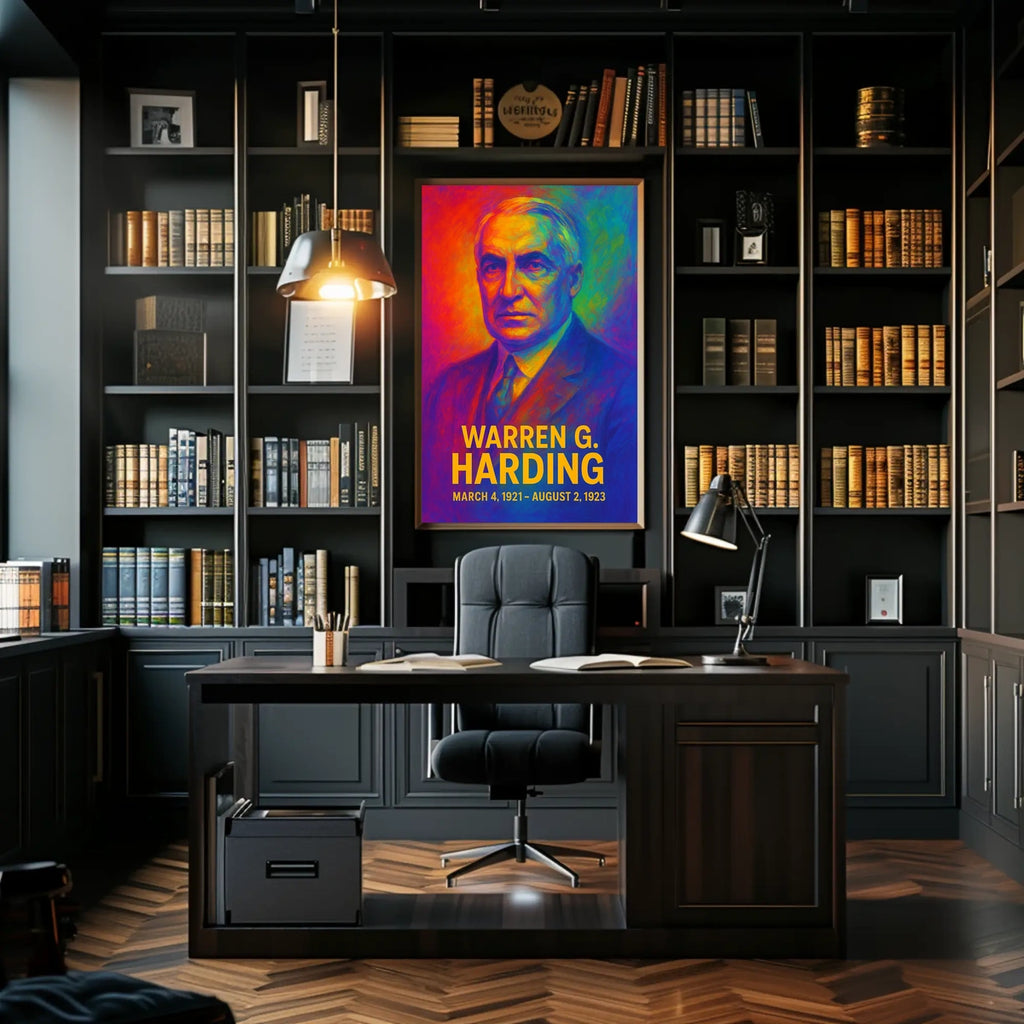 Warren G. Harding 29th President of the United States Neon Gradient Overlay Poster