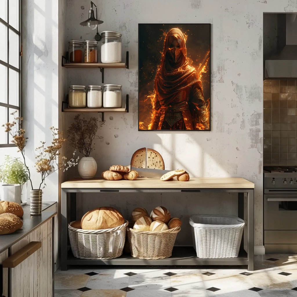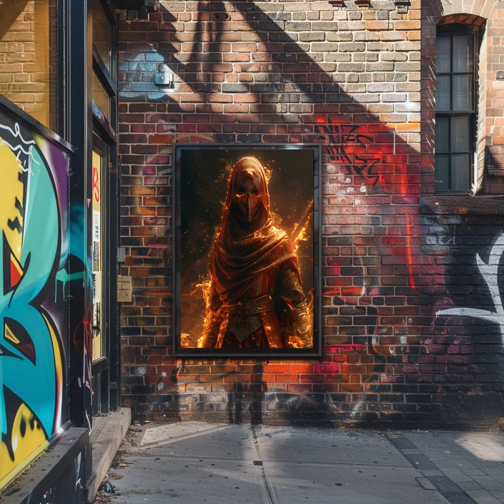 Bring Warrior Of Flames Poster into your space today and let your walls tell a powerful story.