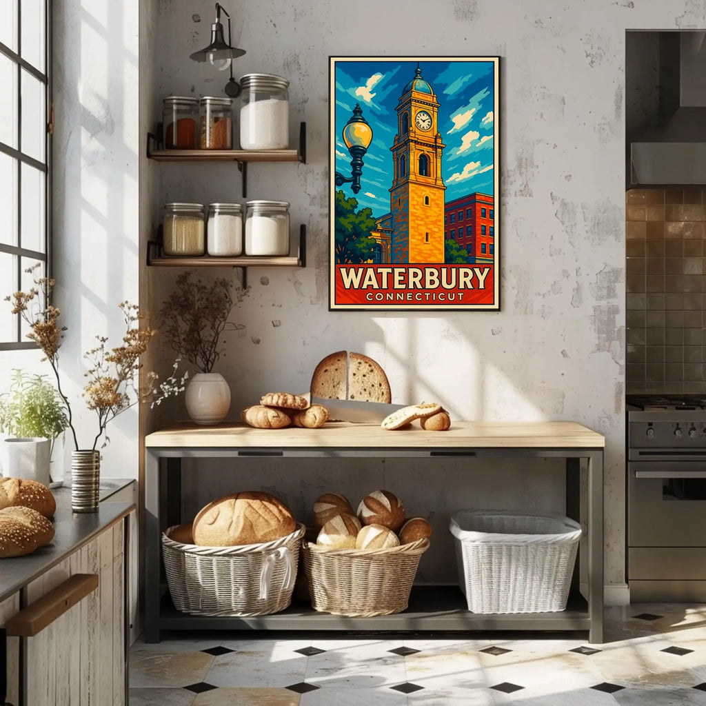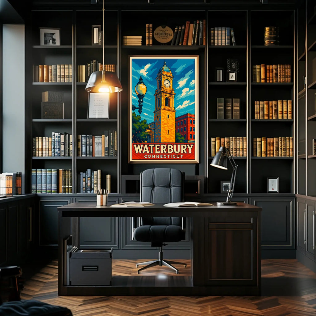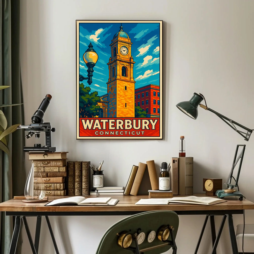 Waterbury, Connecticut Poster — This poster captures the essence of Waterbury, Connecticut. Designed for decor lovers and wanderlust spirits, this art print adds charm to any room with visuals inspired by real-world scenery.