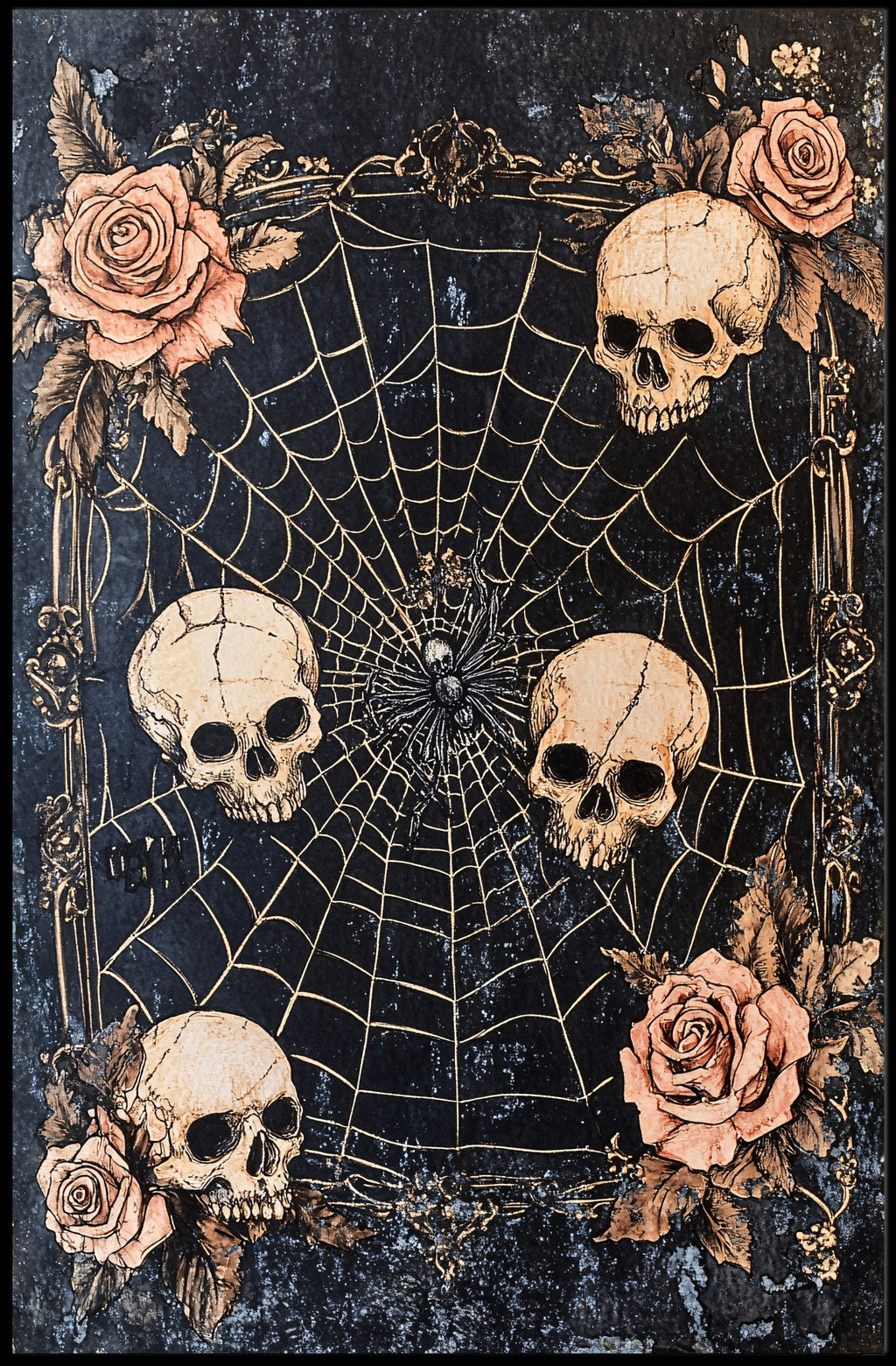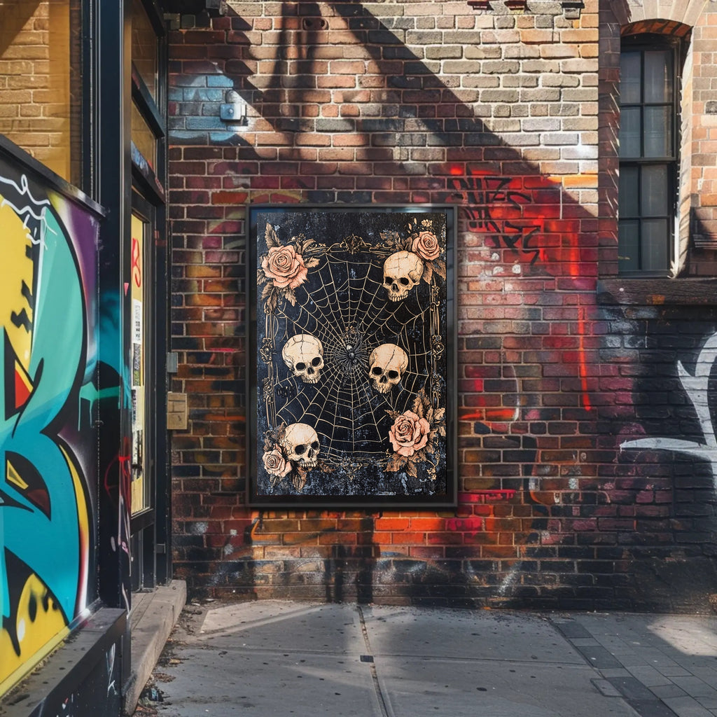 Unique Design: Featuring a mesmerizing spider web with skulls and roses, this poster is a conversation starter that draws in the eye.