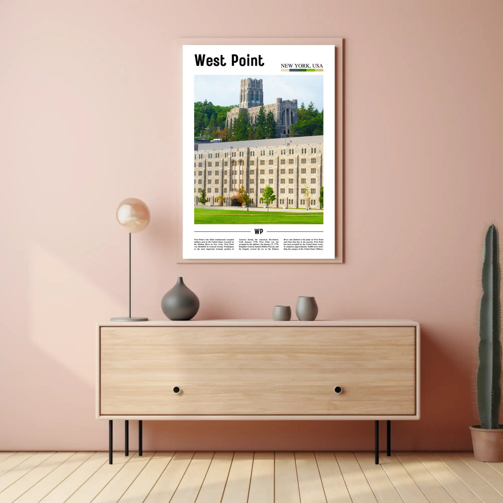 - Classic travel-poster design: Clean white border, bold “West Point” masthead and subtle “NEW YORK, USA” callout lend vintage-inspired charm with modern presentation.