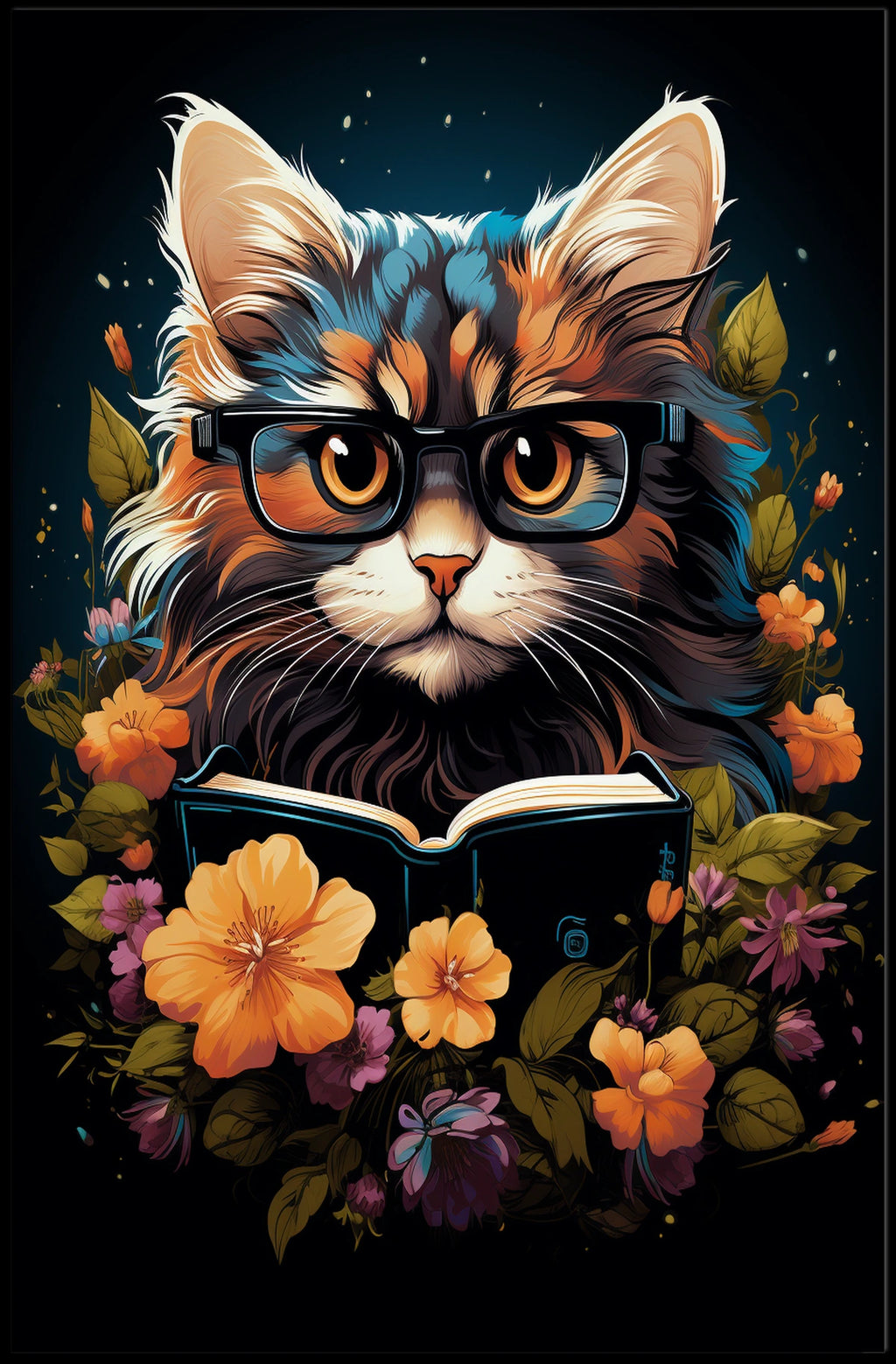 Let this delightful poster spark conversations about curiosity, literature, and the beauty of nature. Add Whimsical Cat Glasses Poster with Vibrant Flowers to your collection and transform your walls into a lively narrative of intellect, charm, and colorful imagination — a true cat-loving treasure and a stylish addition to modern art displays.