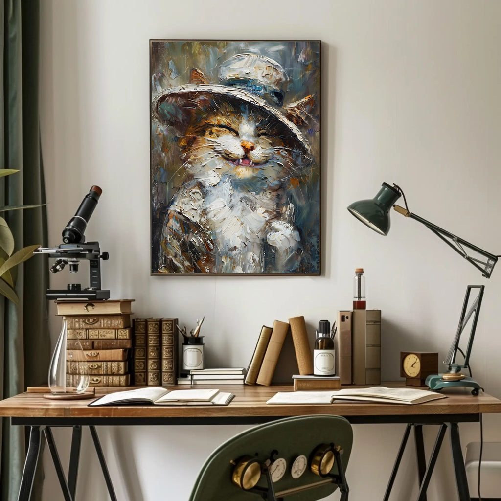 Bring home a conversation starter—order the Whimsical Cat in Hat Artistic Animal Poster from PosterGoat today and let playful art transform your space.