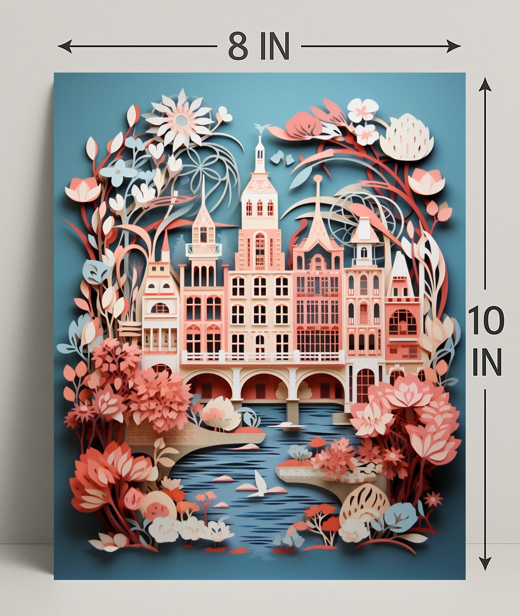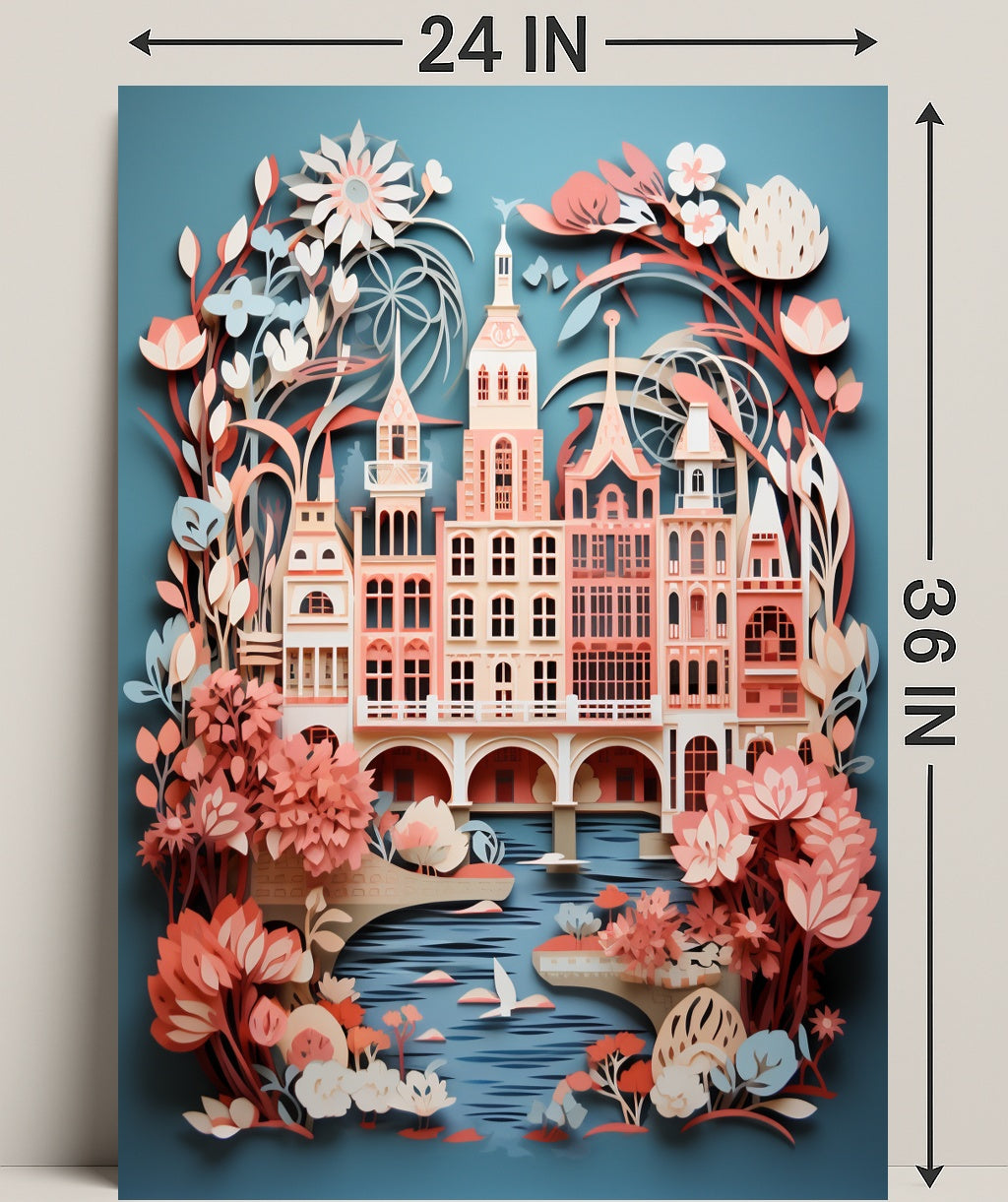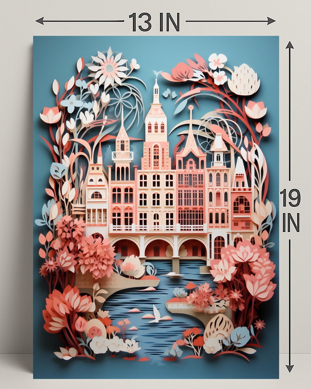 Charming Design: Features a whimsical cityscape surrounded by lush blooms, adding a touch of magic to your decor.