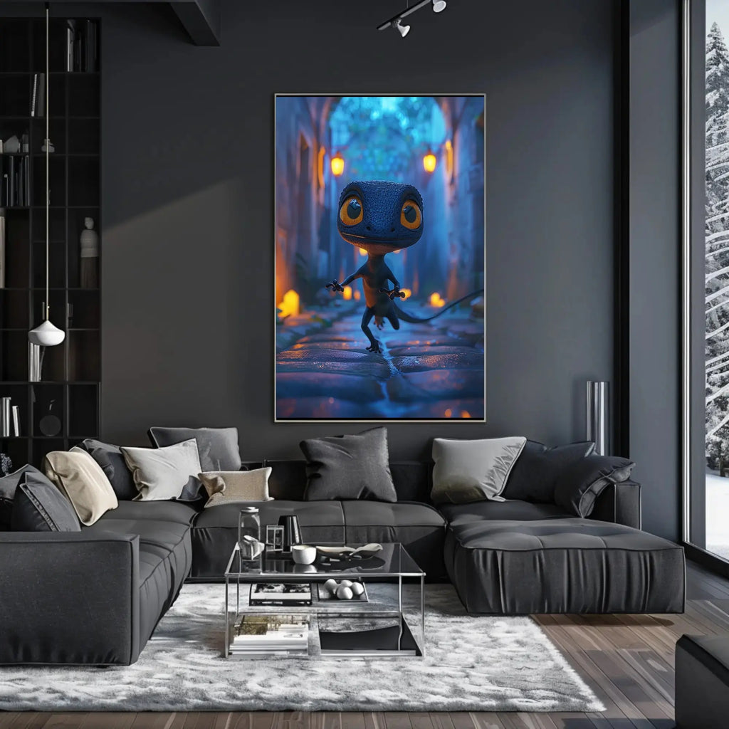 High-impact visuals: Large, expressive eyes on the gecko and finely detailed skin texture make this poster feel alive from across the room.