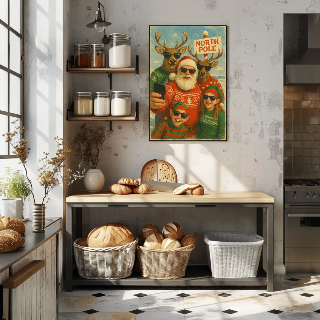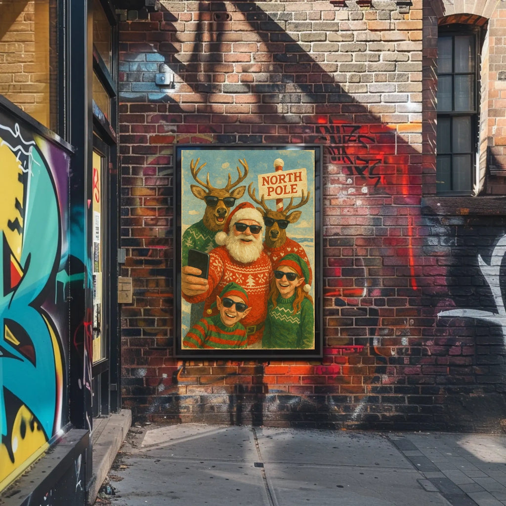 Whether for the home, classroom, or office, bring this north pole scene into your space and let your walls tell a playful, heartwarming story this holiday season. Add it to a gallery wall, display it in storefront promotions, or gift it to someone who enjoys lighthearted Christmas imagery with a vintage twist.