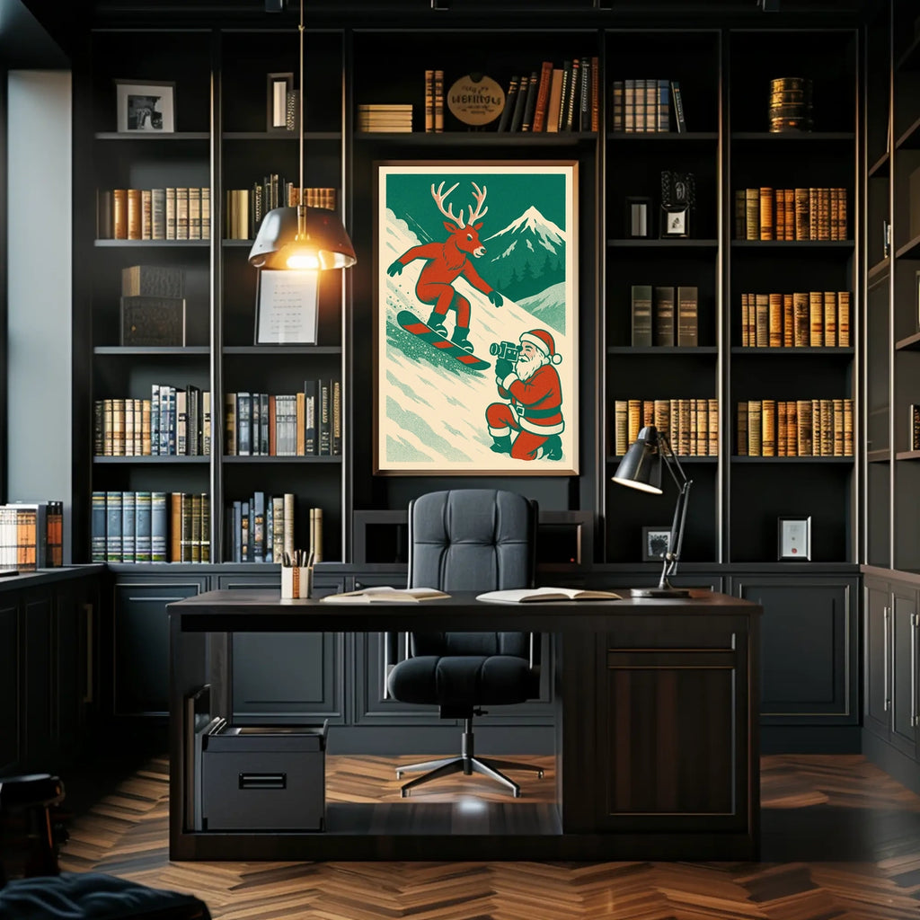- Printed with precision and made to inspire, this artwork is more than decoration—it’s a conversation piece that connects holiday tradition, whimsy, and style. Bring the Whimsical Reindeer Snowboarding Vintage Holiday Poster into your home, classroom, or office today and let your walls tell a powerful story