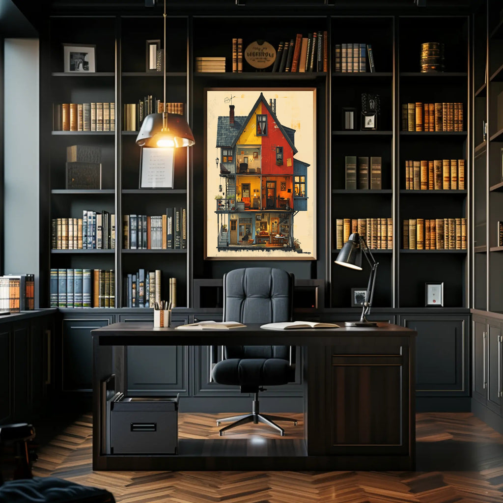 Bring vintage charm and playful detail to your walls — order the Whimsical Vintage House Cross-Section Art Poster from PosterGoat today and make your space more inviting.