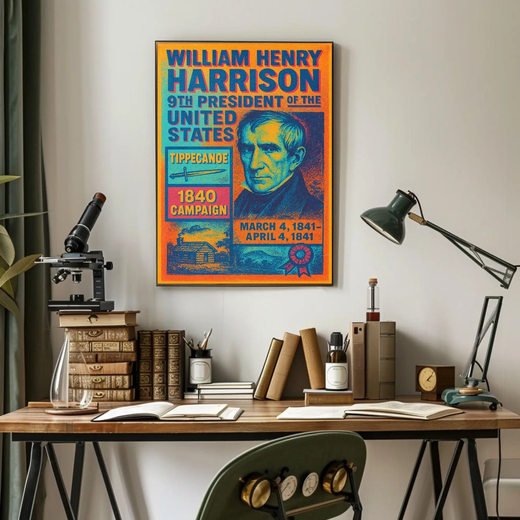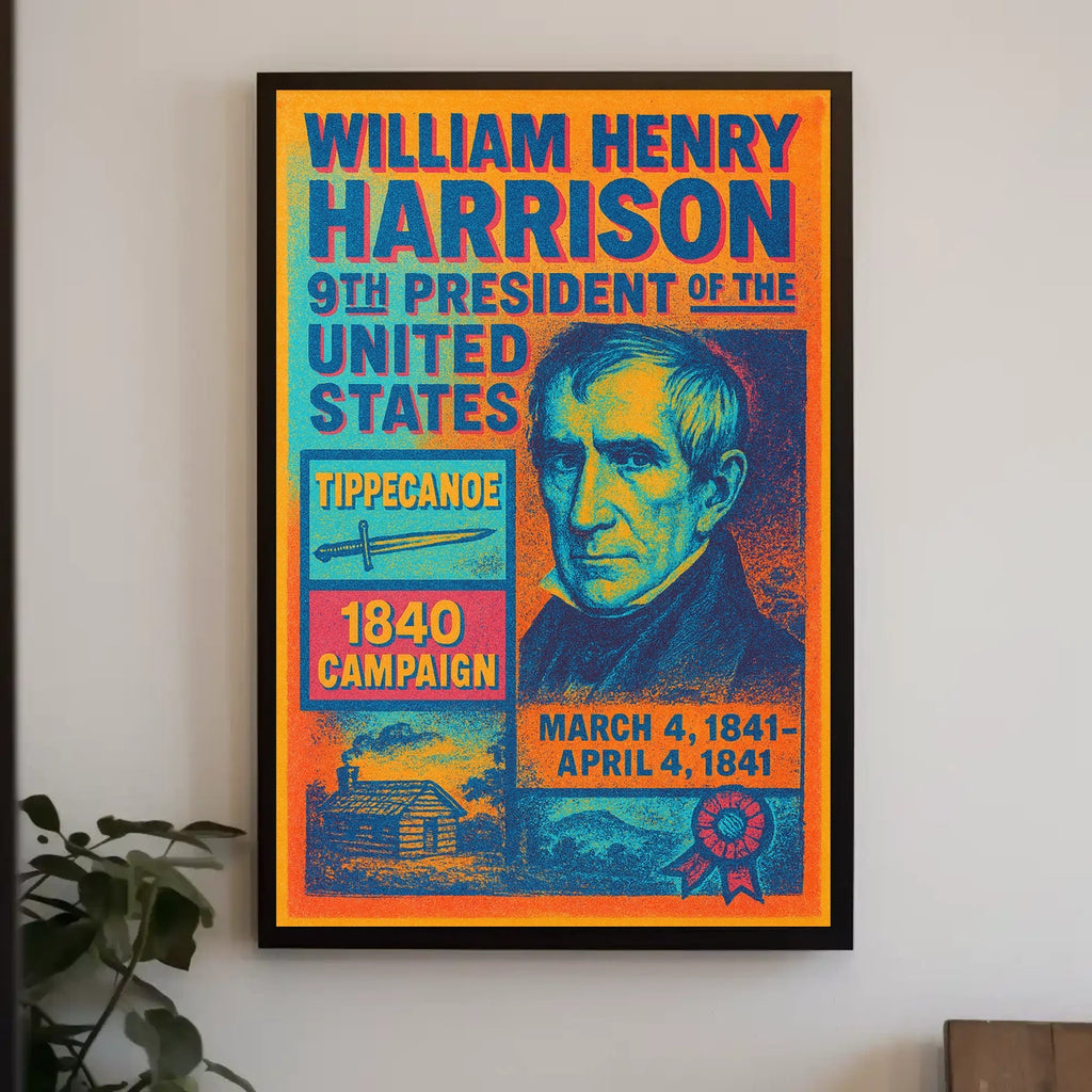 - Printed with precision and made to inspire, this artwork is more than decoration—it's a conversation piece that connects history, culture, and style. Bring William Henry Harrison 9th President Poster into your home, classroom, or office today and let your walls tell a powerful story.