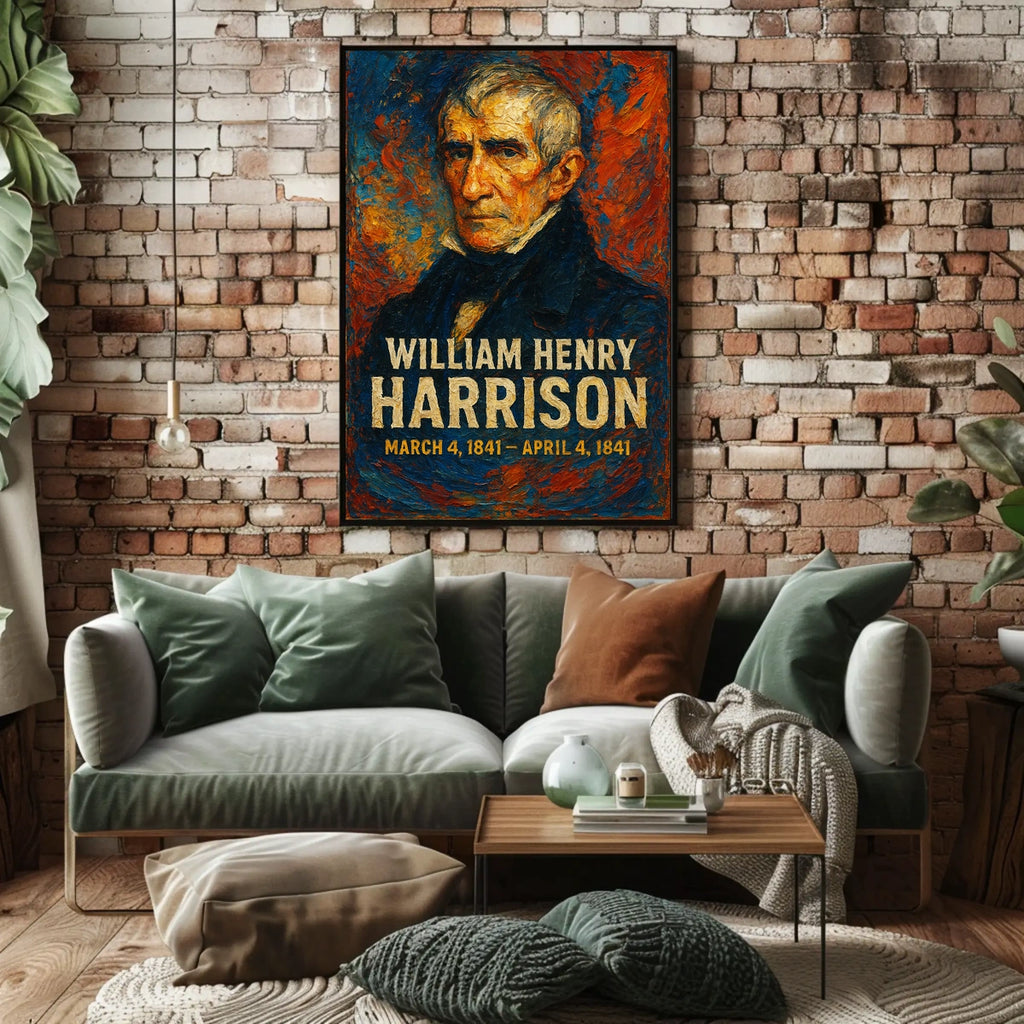 - Printed with precision and made to inspire, this artwork is more than decoration—it’s a conversation piece that connects history, culture, and style. Bring William Henry Harrison into your home, classroom, or office today and let your walls tell a powerful story.