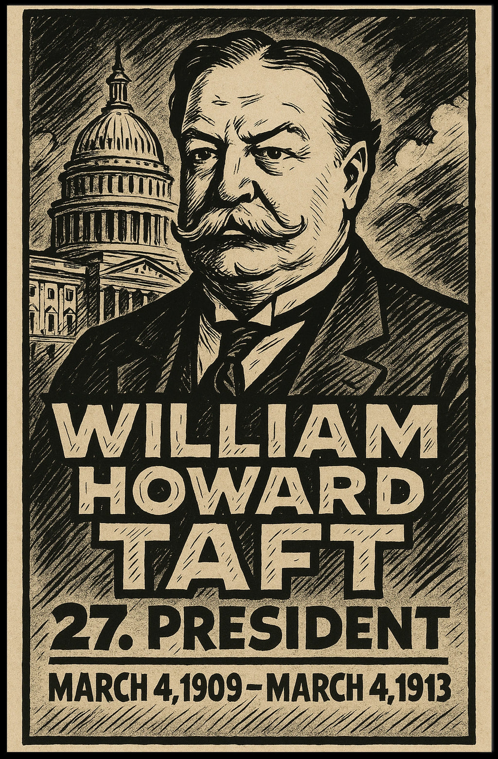 Capture a pivotal moment in American history with a bold, stylish twist. This William Howard Taft poster merges a classic portrait with a playful comic sketch in striking black-and-white ink, turning history into conversation-worthy wall art for any space.