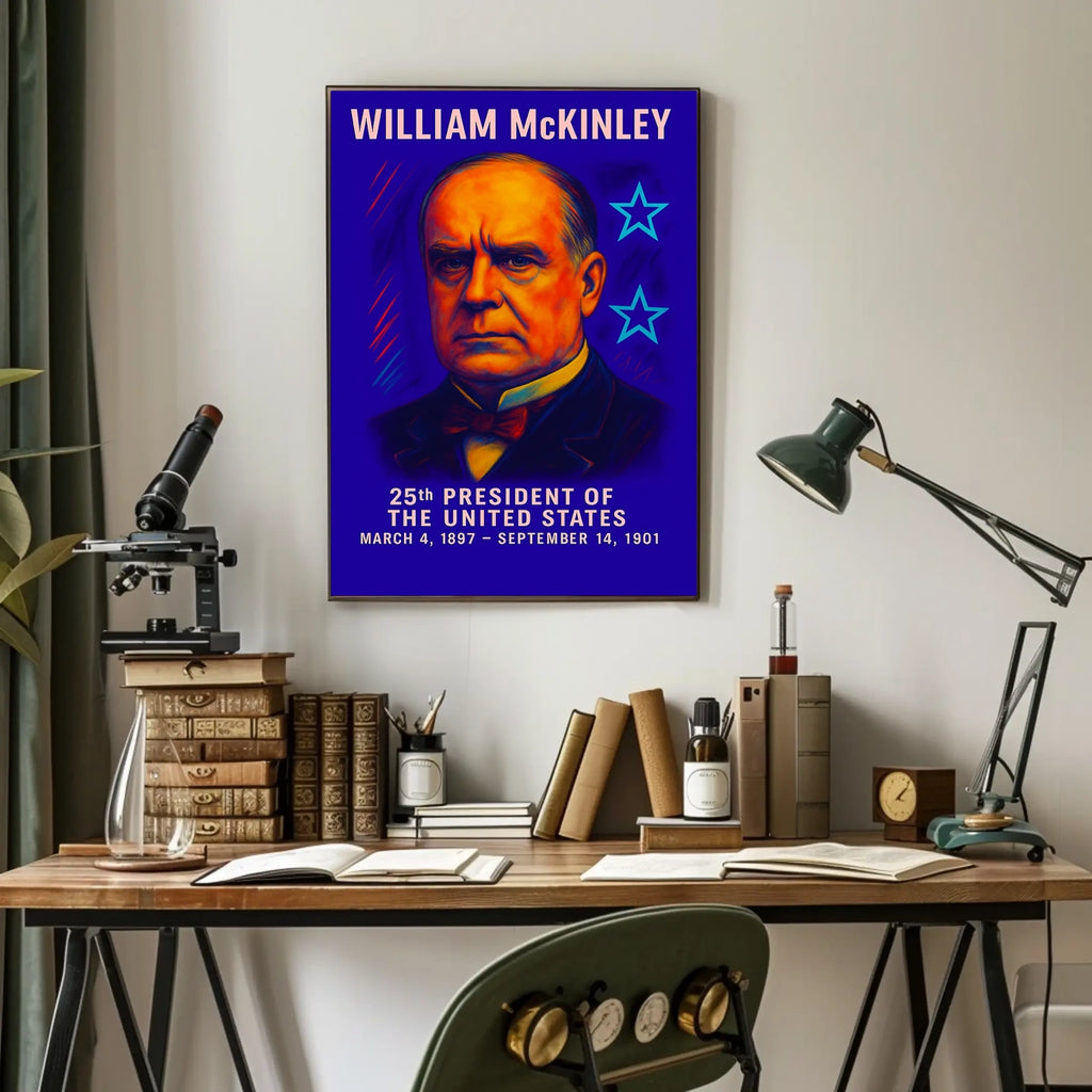 Intro: Celebrate a pivotal moment in American history with this William McKinley 25th President Poster. Designed for decor lovers and wanderlust spirits, this art print blends classic, historic subject matter with real-world scenery to create a sophisticated focal point in any room.