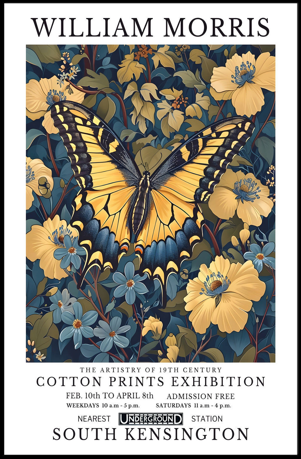 Celebrate the beauty of the 19th century with the stunning William Morris Butterfly and Floral Heritage Artistic Poster. This exquisite piece features a captivating illustration of a vibrant yellow and black butterfly surrounded by a lush array of flowering plants. Inspired by the timeless designs of William Morris, this poster embodies intricate craftsmanship and a celebration of nature’s beauty, making it a perfect addition to any art lover’s collection.