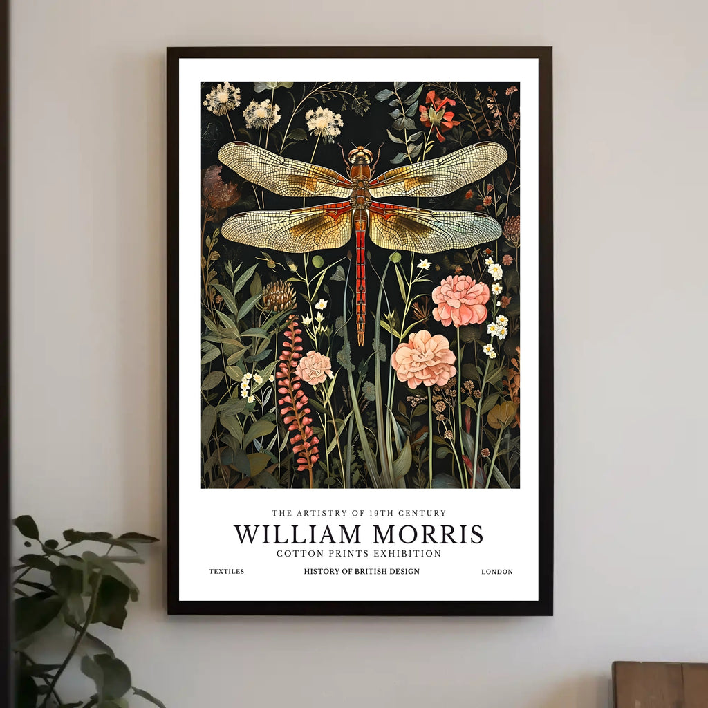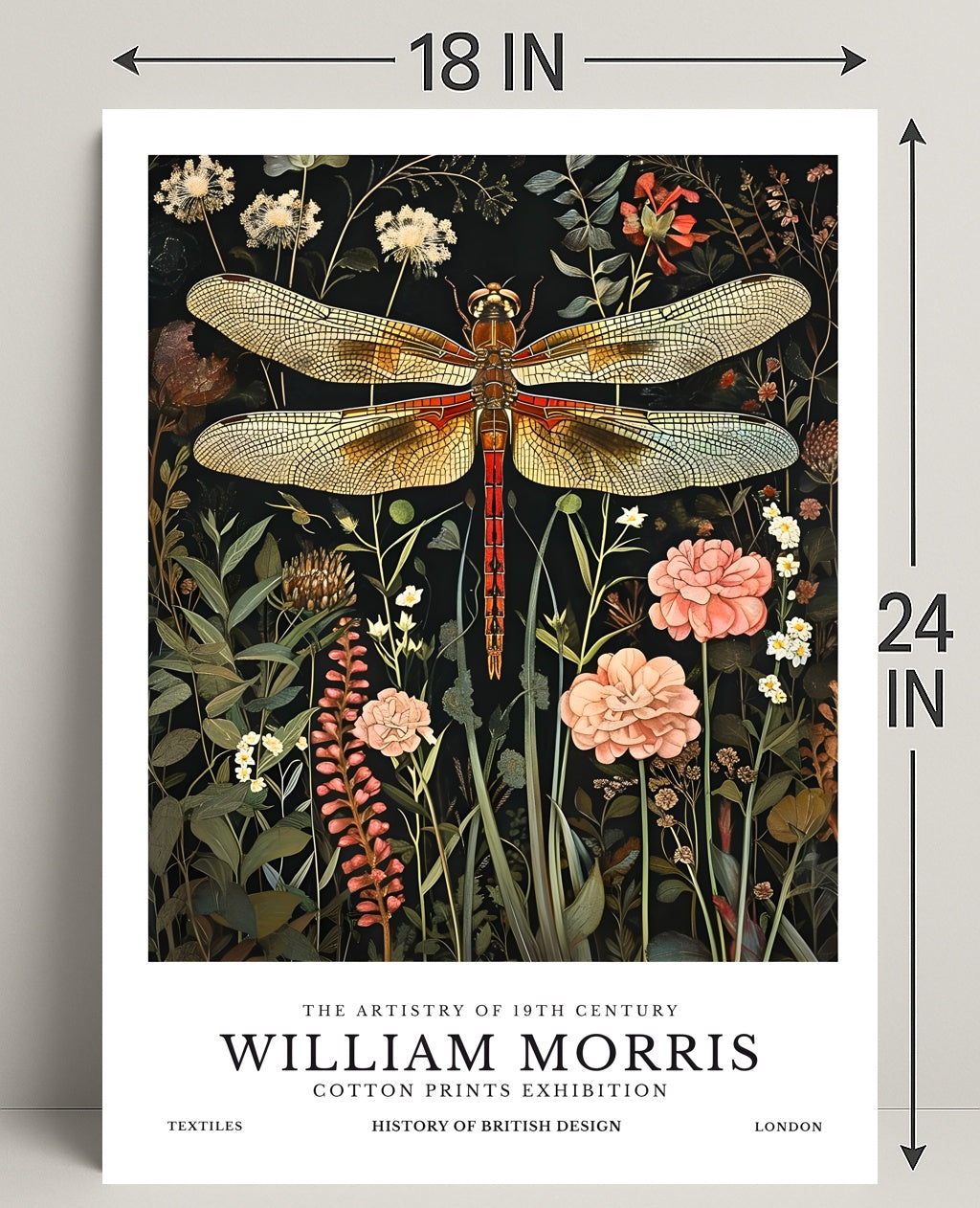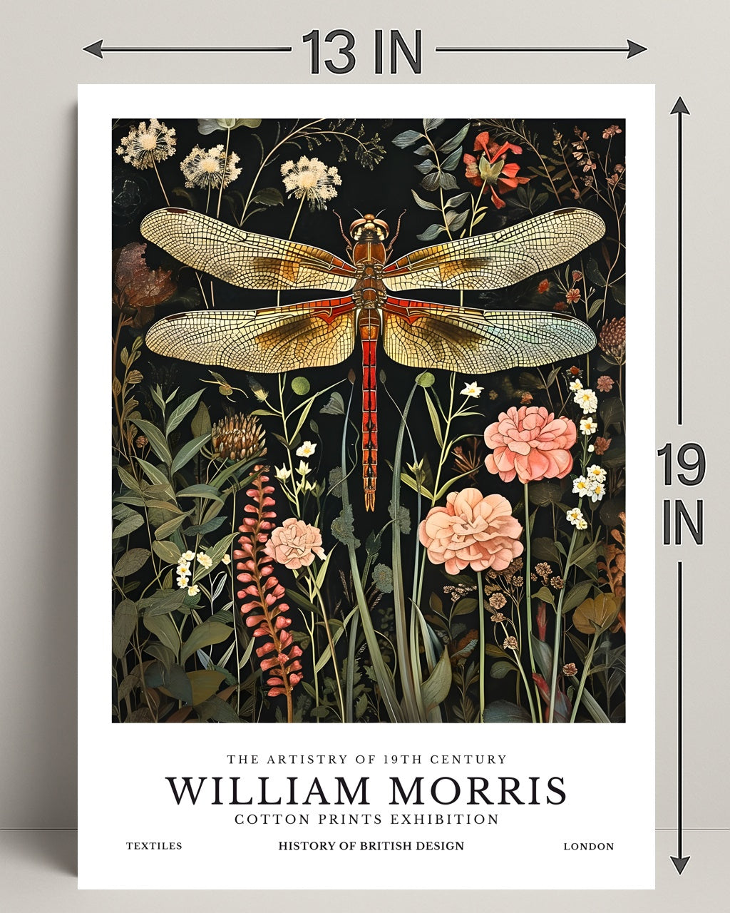 Immerse yourself in the enchanting world of 19th-century British textile design with the stunning William Morris Dragonfly Textile Art Artistic Poster. This captivating artwork features a beautifully detailed dragonfly set against a striking dark backdrop. Enhanced by intricate botanical illustrations, it pays homage to the legendary designer William Morris, making it a perfect addition to any art lover's collection.