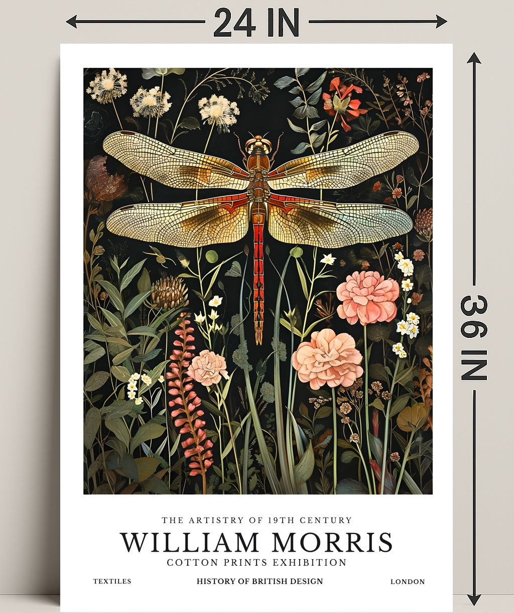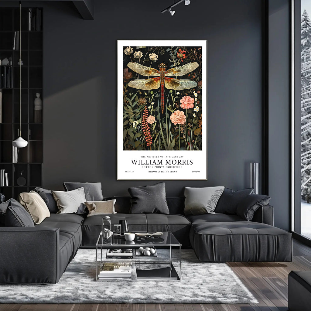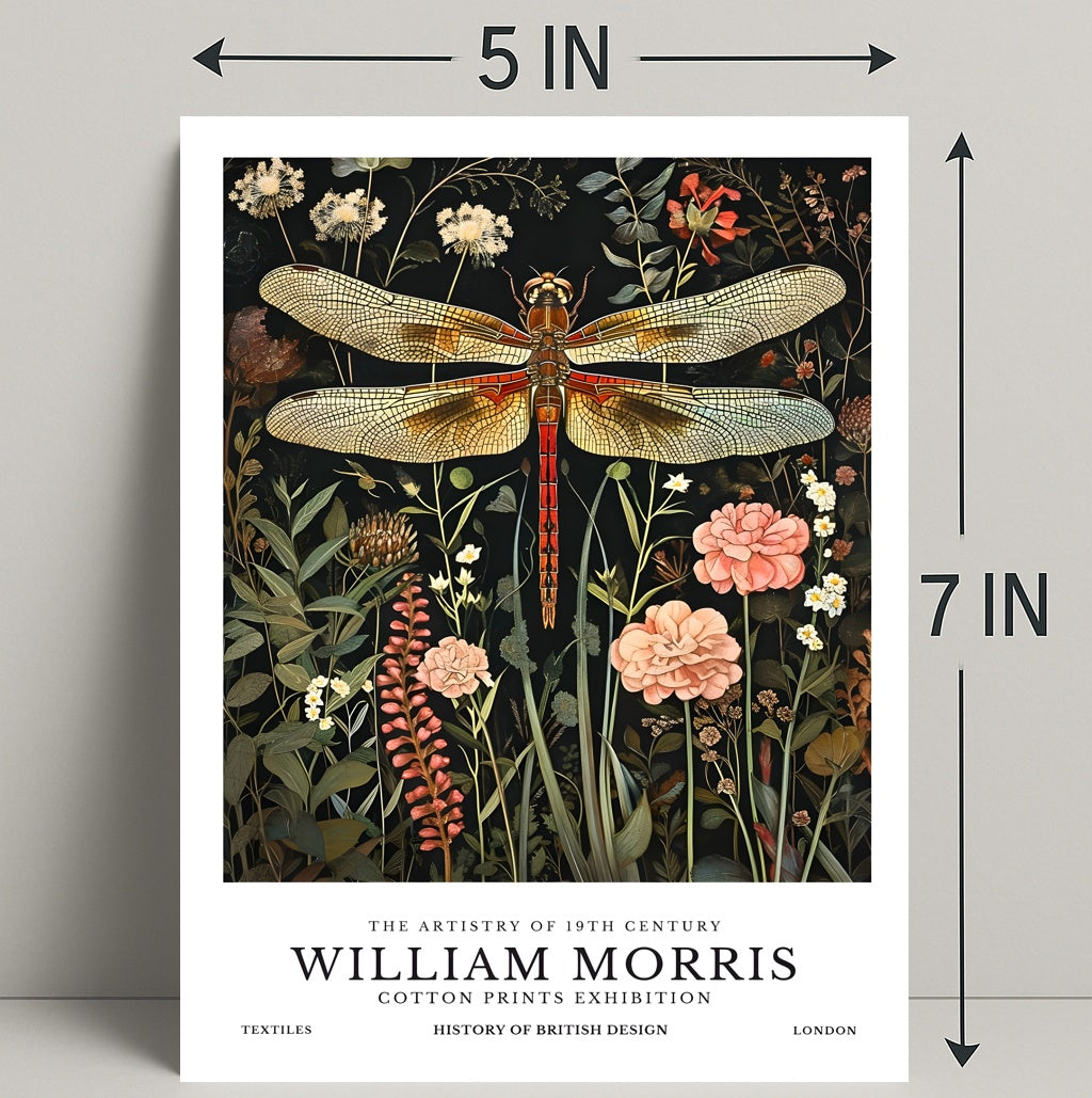 Immerse yourself in the enchanting world of 19th-century British textile design with the stunning William Morris Dragonfly Textile Art Artistic Poster. This captivating artwork features a beautifully detailed dragonfly set against a striking dark backdrop. Enhanced by intricate botanical illustrations, it pays homage to the legendary designer William Morris, making it a perfect addition to any art lover's collection.
