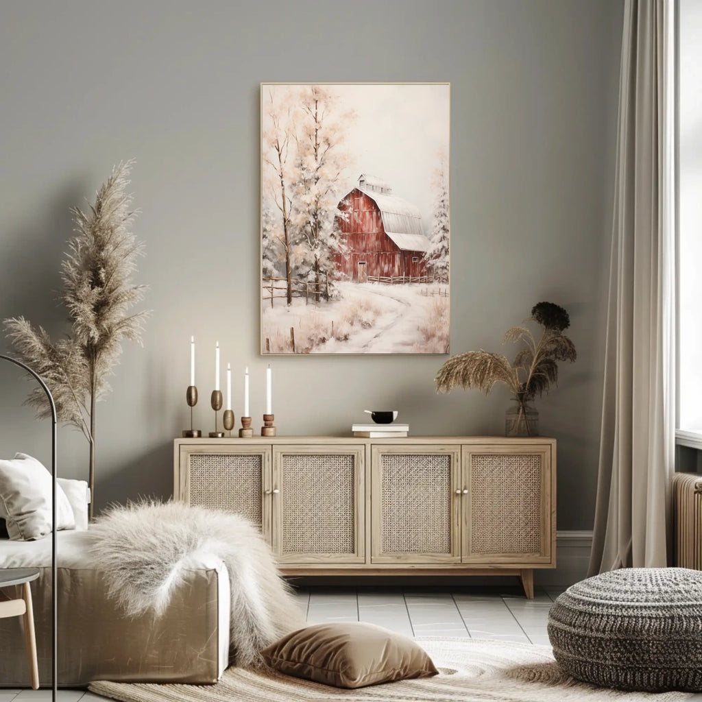 - Printed with precision and made to inspire, this artwork is more than decoration—it’s a conversation piece that connects scenery, culture, and style. Bring Winter Barn Scene into your home, classroom, or office today and let your walls tell a powerful story.