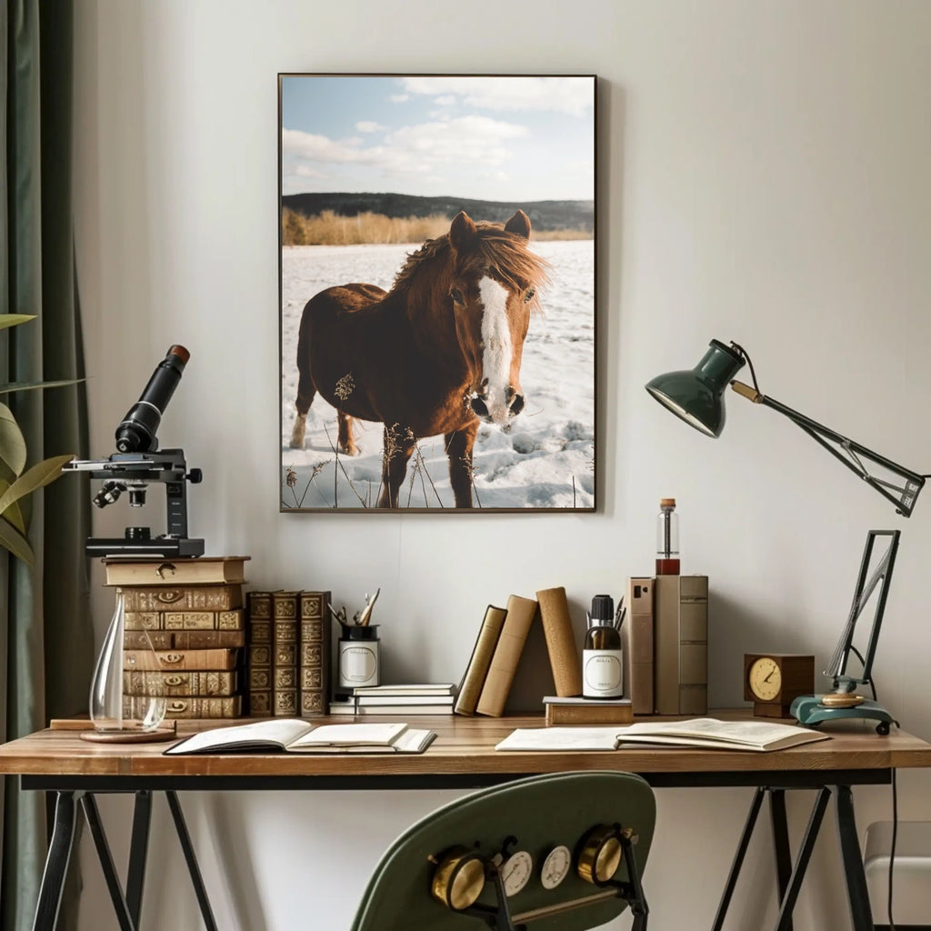 - Printed with precision and made to inspire, this artwork is more than decoration—it’s a conversation piece that connects winter, nature, and art. Bring Winter Horse in the Snow Poster into your home, classroom, or office today and let your walls tell a powerful story.
