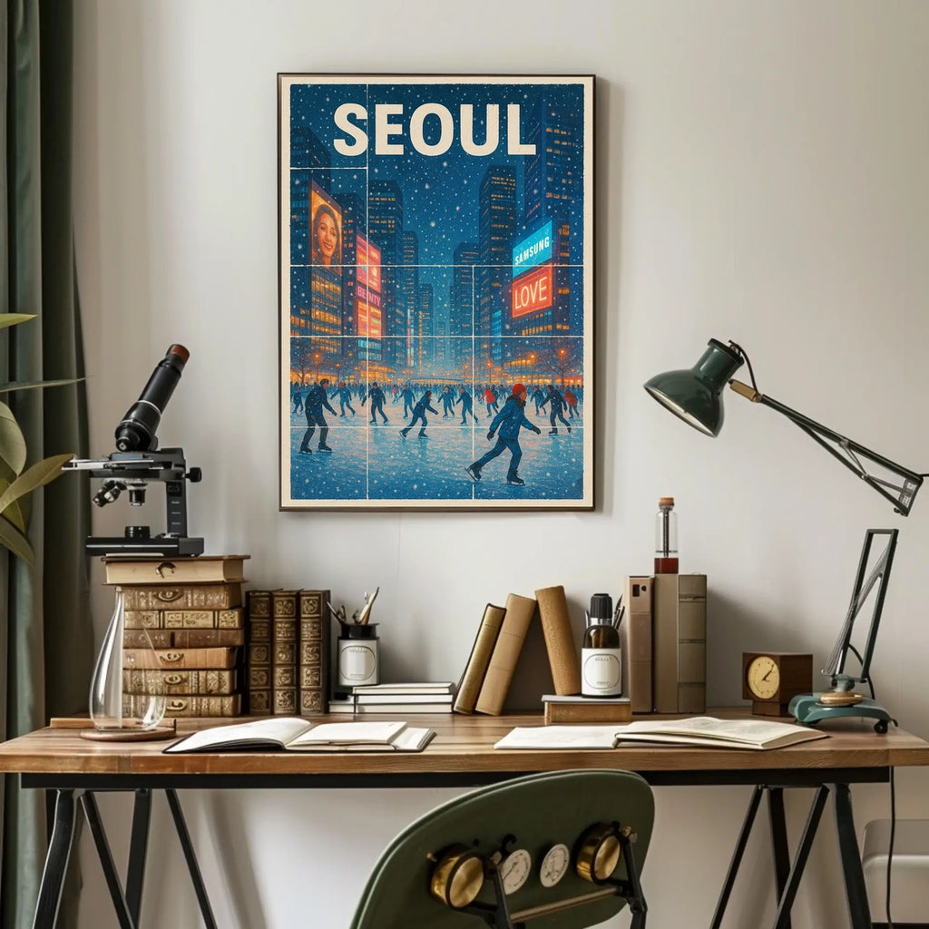 Winter In Seoul Poster captures the essence of winter in Seoul. Designed for decor lovers and wanderlust spirits, this art print adds charm to any room with visuals inspired by real-world scenery.