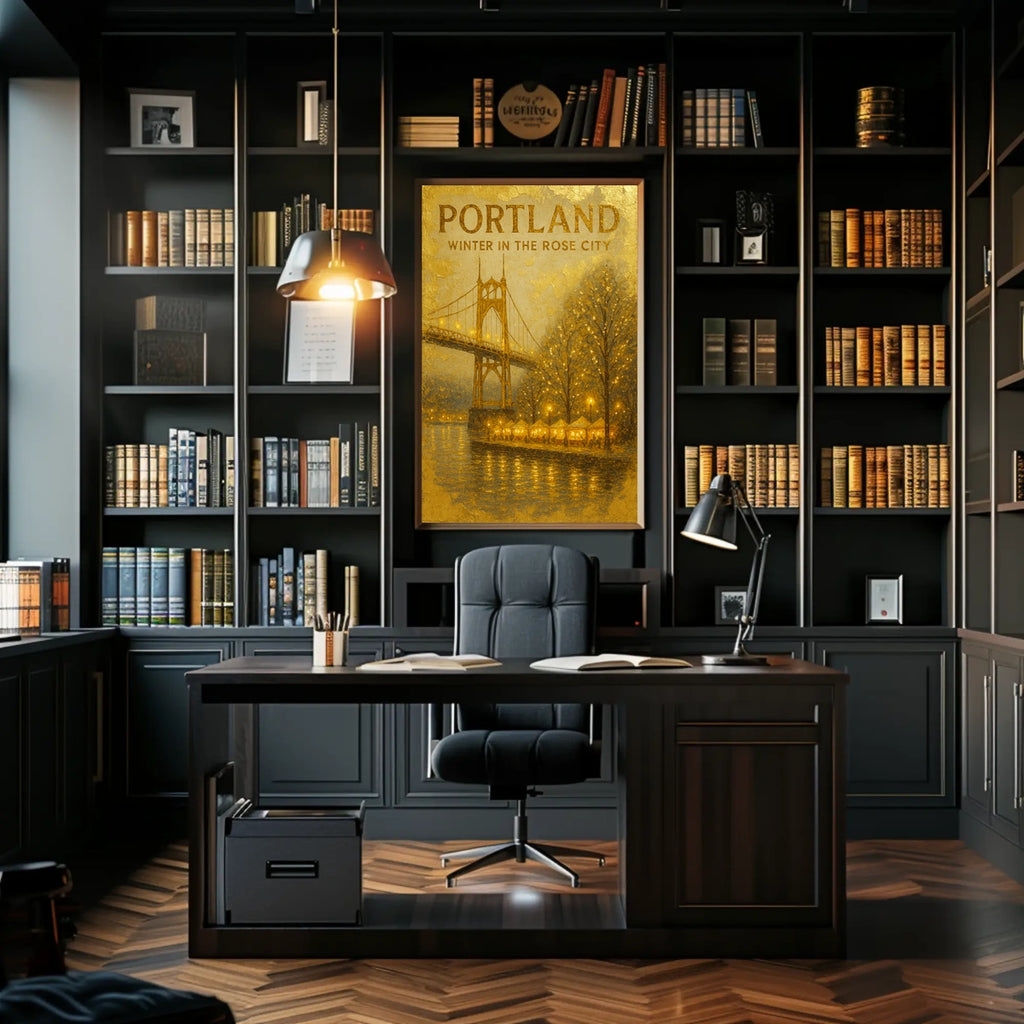 Winter In The Rose City Poster celebrates the beauty of winter in the Rose City with a timeless wall art piece designed for decor lovers and wanderlust spirits. Inspired by real-world scenery, this art print adds charm to any room and invites a sense of exploration and calm.