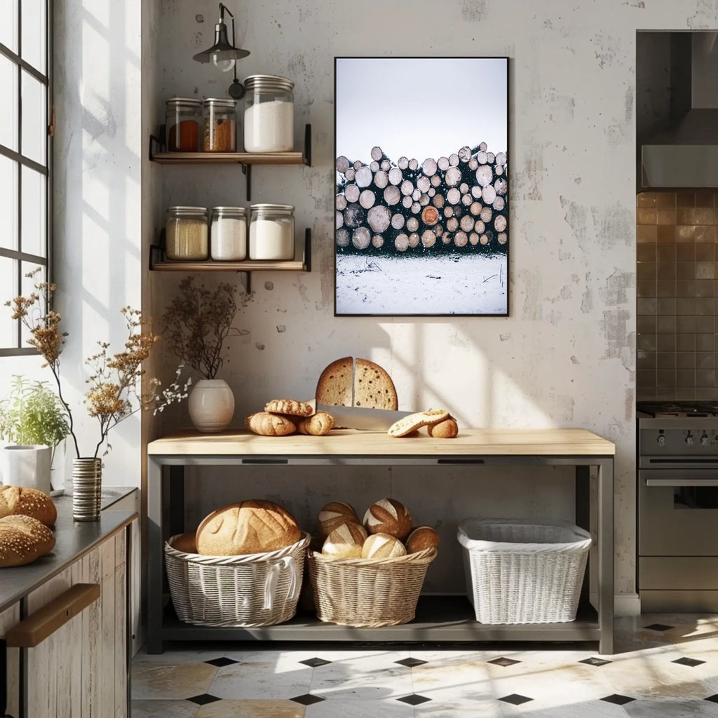 Winter Log Pile Poster is a scenic piece inspired by real-world scenery, ideal for decor lovers and wanderlust spirits seeking a touch of nature in any room.