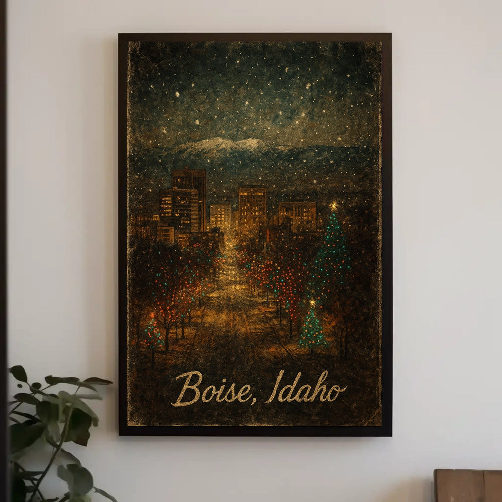 Perfect as a decorative piece for living rooms, bedrooms, or offices, this scenic poster also makes a thoughtful gift for Boise lovers, travelers, and art enthusiasts. A true souvenir that celebrates Idaho’s winter nights, it’s ideal for wall art in homes and classrooms alike.