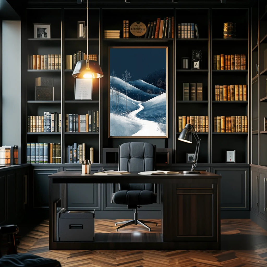 Bring Winter Night Serenity into your home, classroom, or office today and let your walls tell a powerful story with a blue and white palette that evokes calm, tranquility, and contemplation. This modern wall art complements a wide range of decor—from cozy living rooms to minimalist workspaces—making it a timeless addition to your winter decor and a serene centerpiece for any season.
