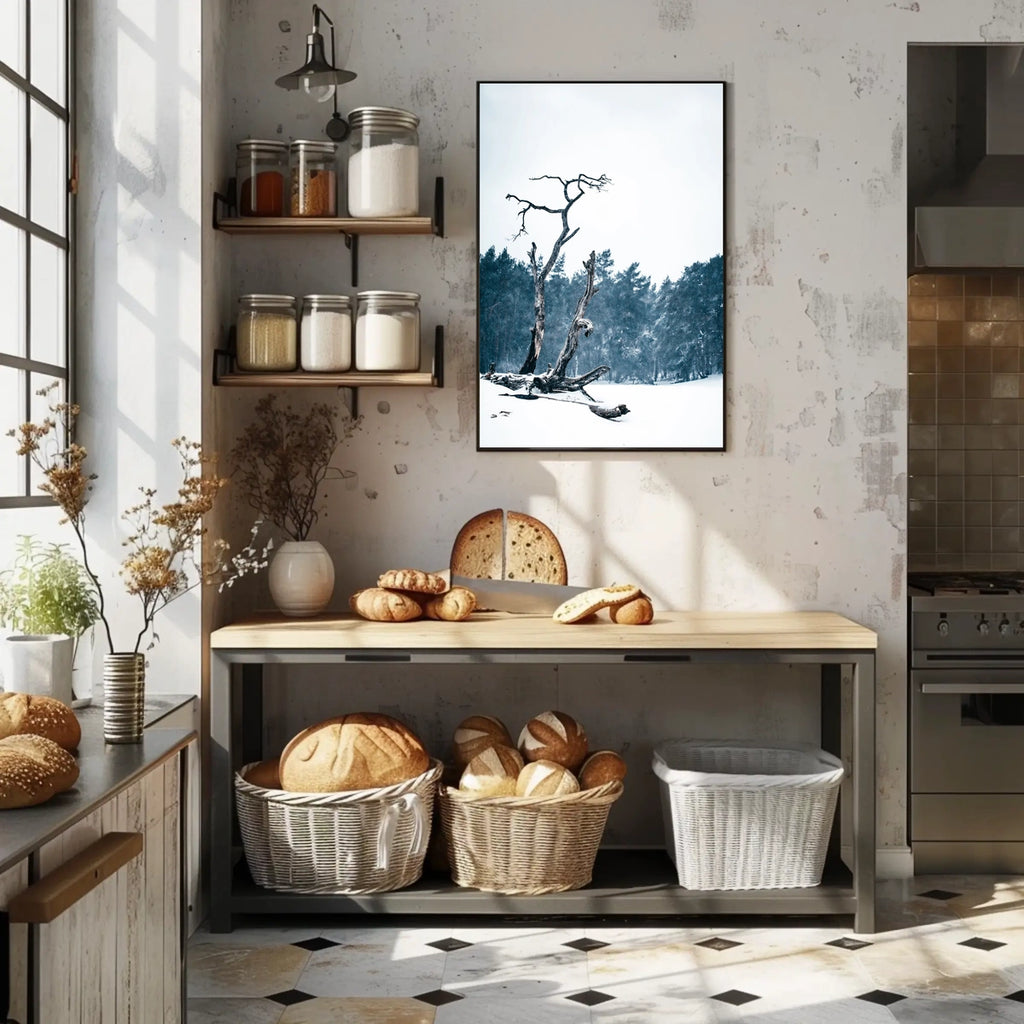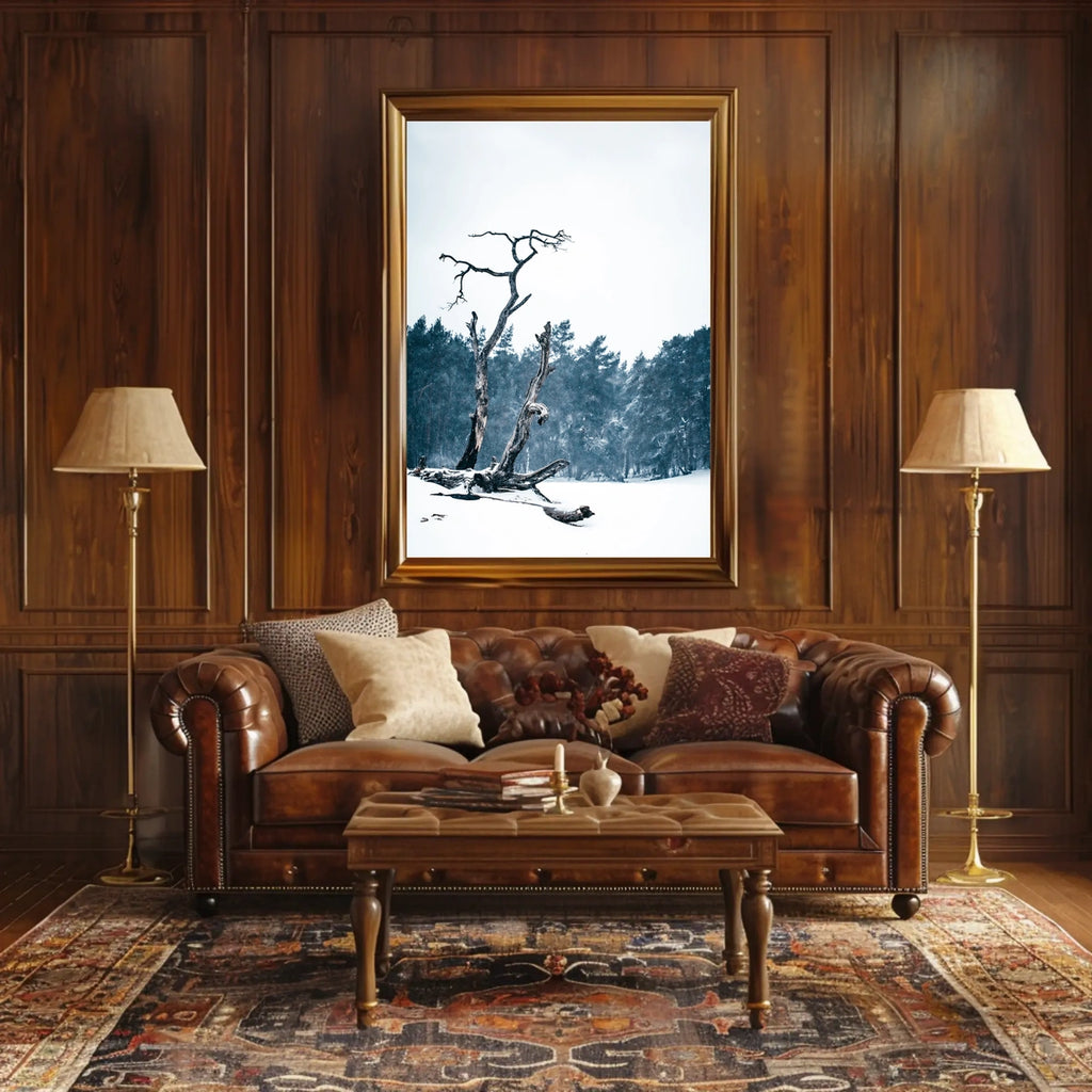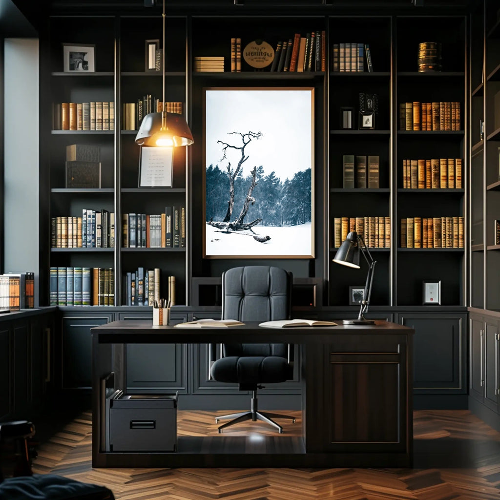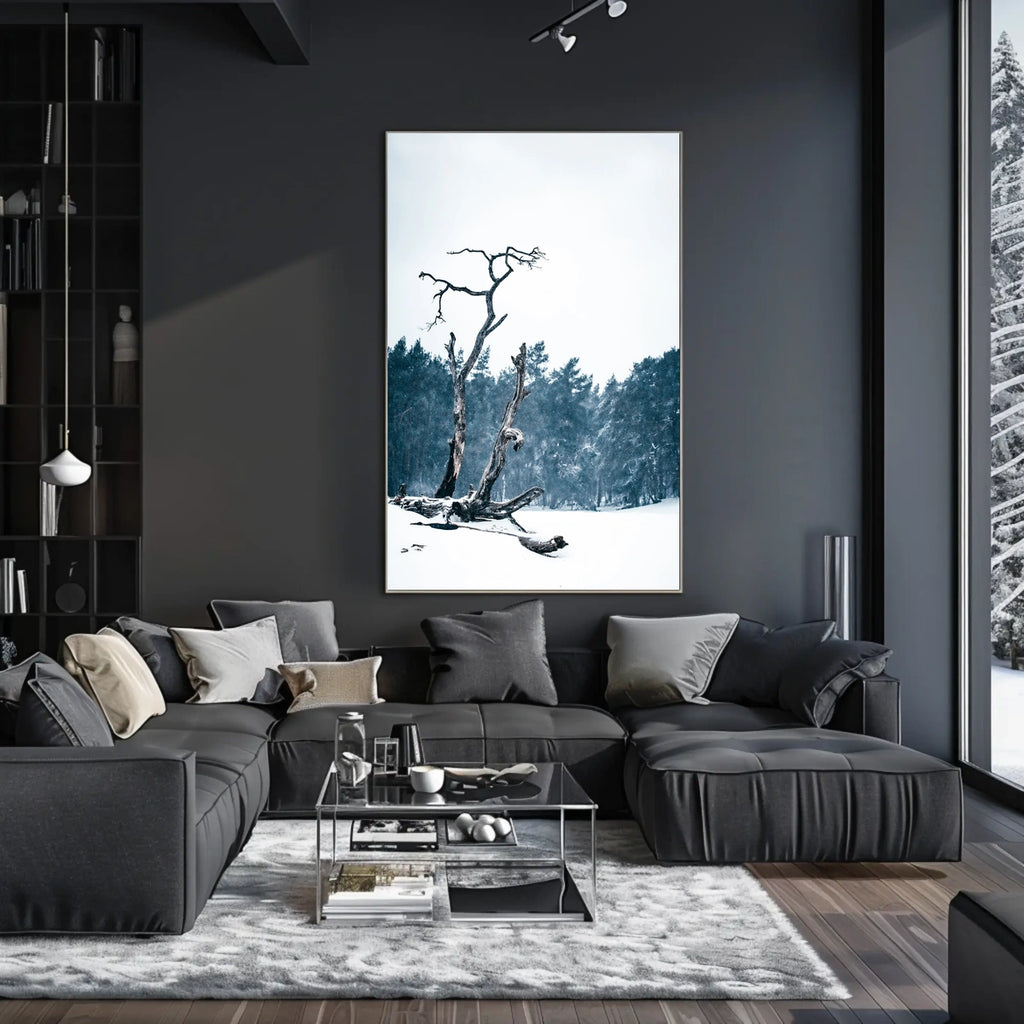 Elevate any room with this evocative poster that blends nature-inspired imagery with modern design. Perfect for living rooms, bedrooms, hallways, or offices, WinterS Embrace Poster invites reflection and a sense of wanderlust every time you glance at it.