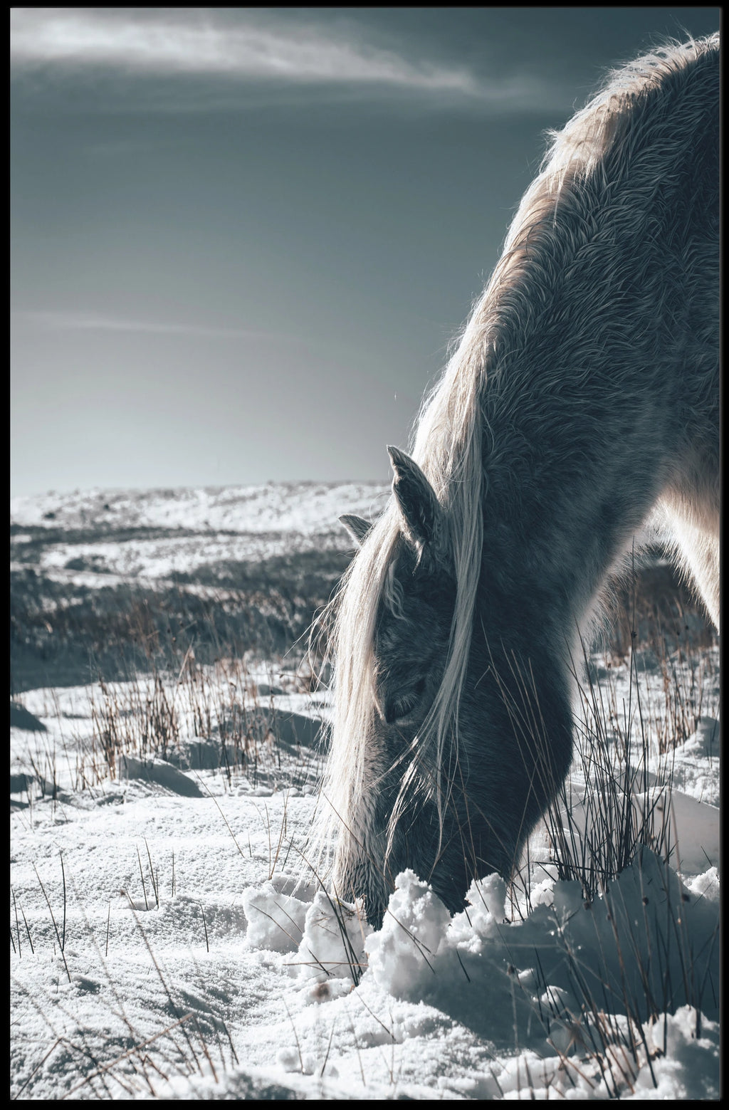 - Detailed design highlighting a serene winter horse in a snow-covered landscape