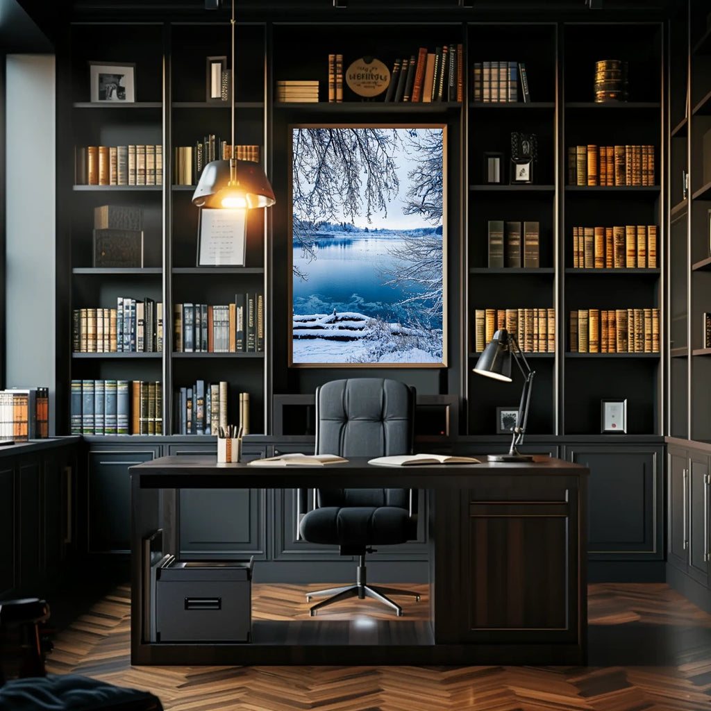 Celebrate the beauty of Winter Serenity By The Lake Poster with this timeless wall art. Designed to capture its unique appeal, this piece is perfect for decor lovers, wanderlust spirits, or anyone who wants to bring meaning and inspiration into their space.