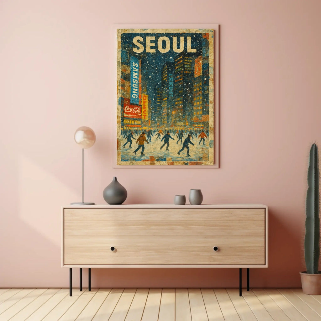 This scenic poster is a perfect addition for art enthusiasts and wall art collectors who love Seoul, skating, and winter imagery. It also serves as a thoughtful gift or souvenir for friends and family who appreciate urban landscapes and travel-inspired decor.