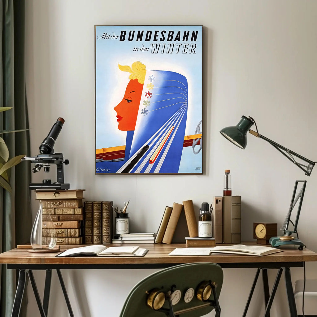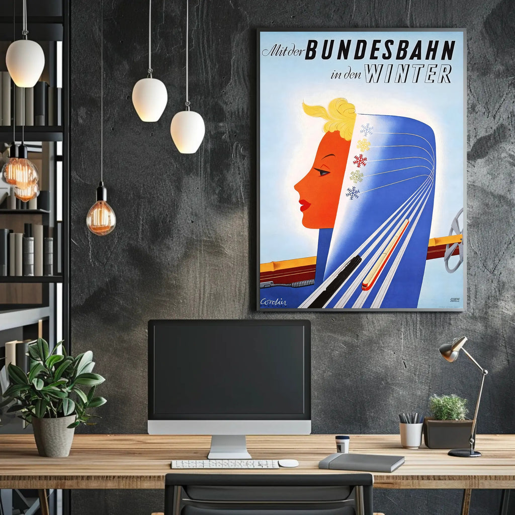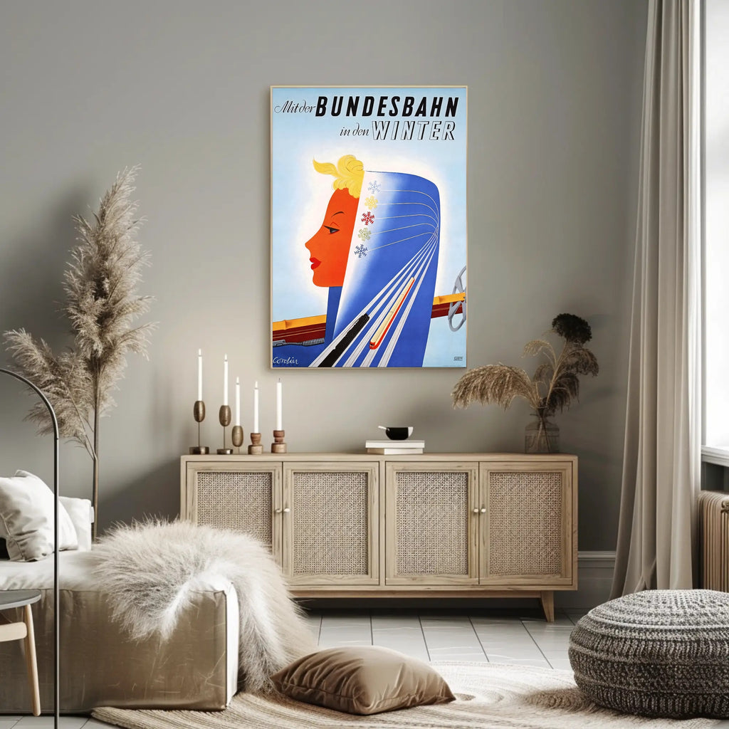 This poster captures the essence of Winter Travel with Bundesbahn. Designed for decor lovers and wanderlust spirits, this art print adds charm to any room with visuals inspired by real-world scenery.
