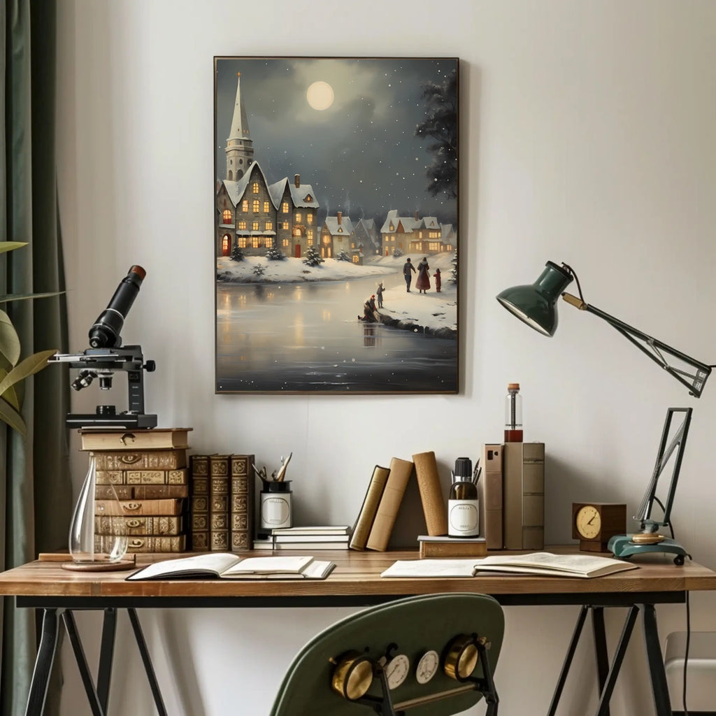 - Printed with precision and made to inspire, this artwork is more than decoration—it’s a conversation piece that connects nostalgia, culture, and style. Bring Winter Village Scene into your home, classroom, or office today and let your walls tell a powerful story.