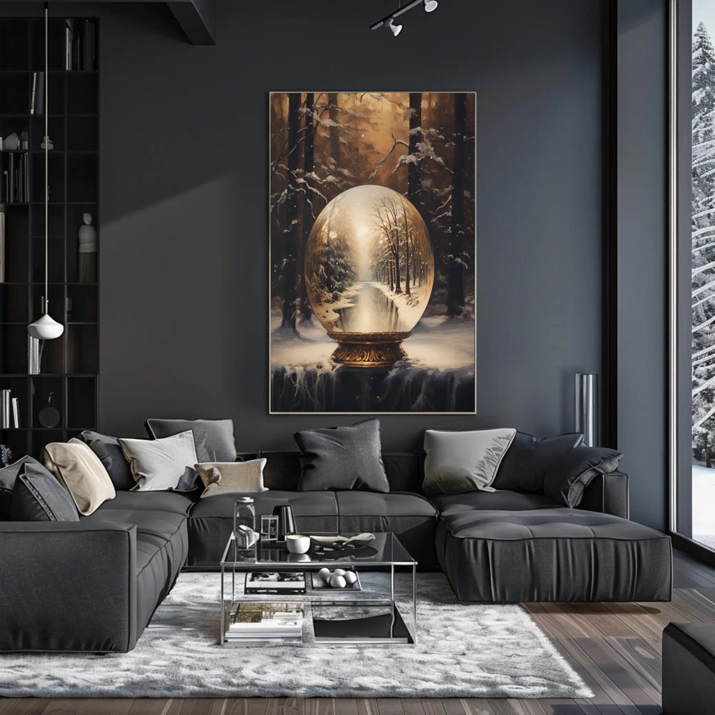- Detailed globe-inspired winter scene that highlights the artwork's unique angle