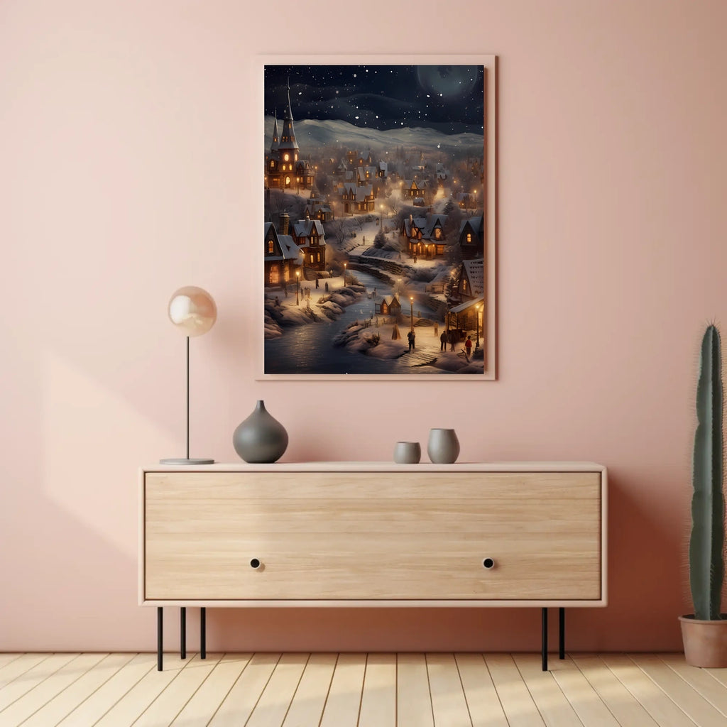 This poster captures the essence of Winter Wonderland Village. Designed for decor lovers and wanderlust spirits, this art print adds charm to any room with visuals inspired by real-world scenery.