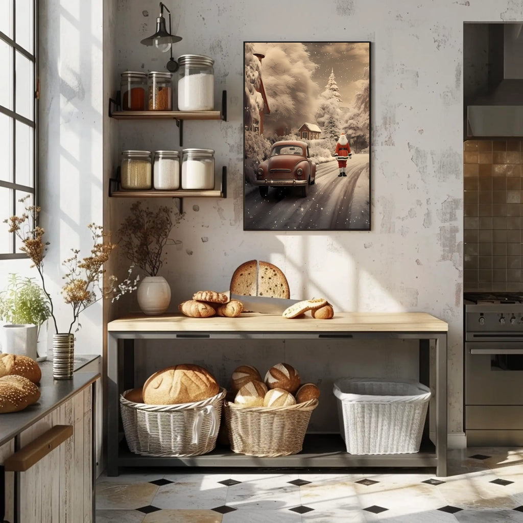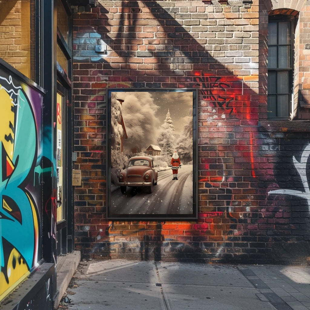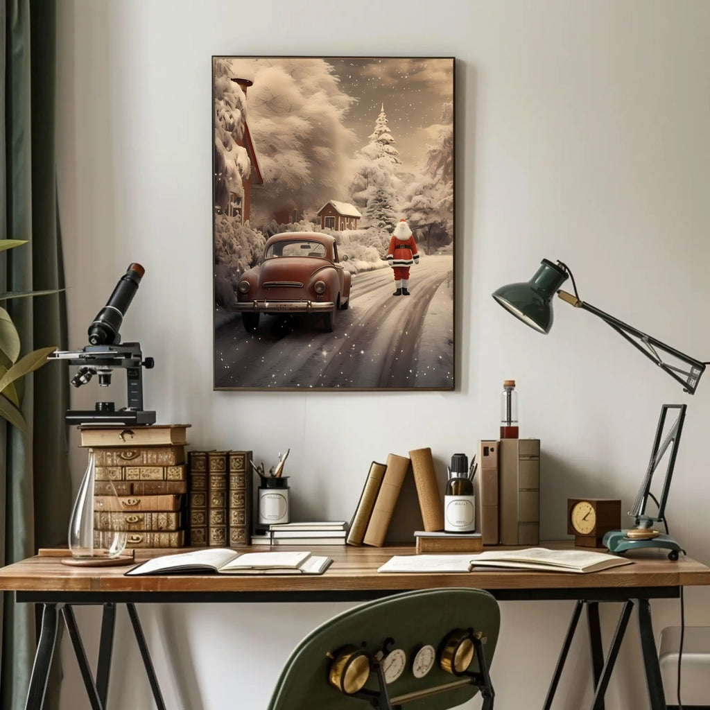 Printed to complement any space—living rooms, bedrooms, hallways, or offices—this scenic poster is a versatile addition to your art collection. It pairs beautifully with other wall art, making it a thoughtful gift for art lovers and Santa enthusiasts alike.