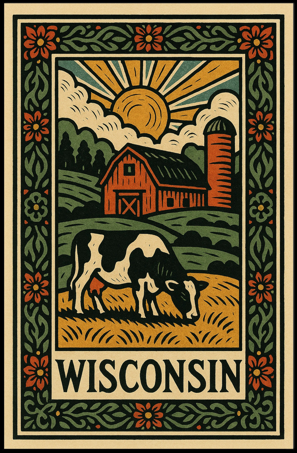 Timeless Rustic Wisconsin Countryside Landscape Wall Art Vintage Inspired Poster