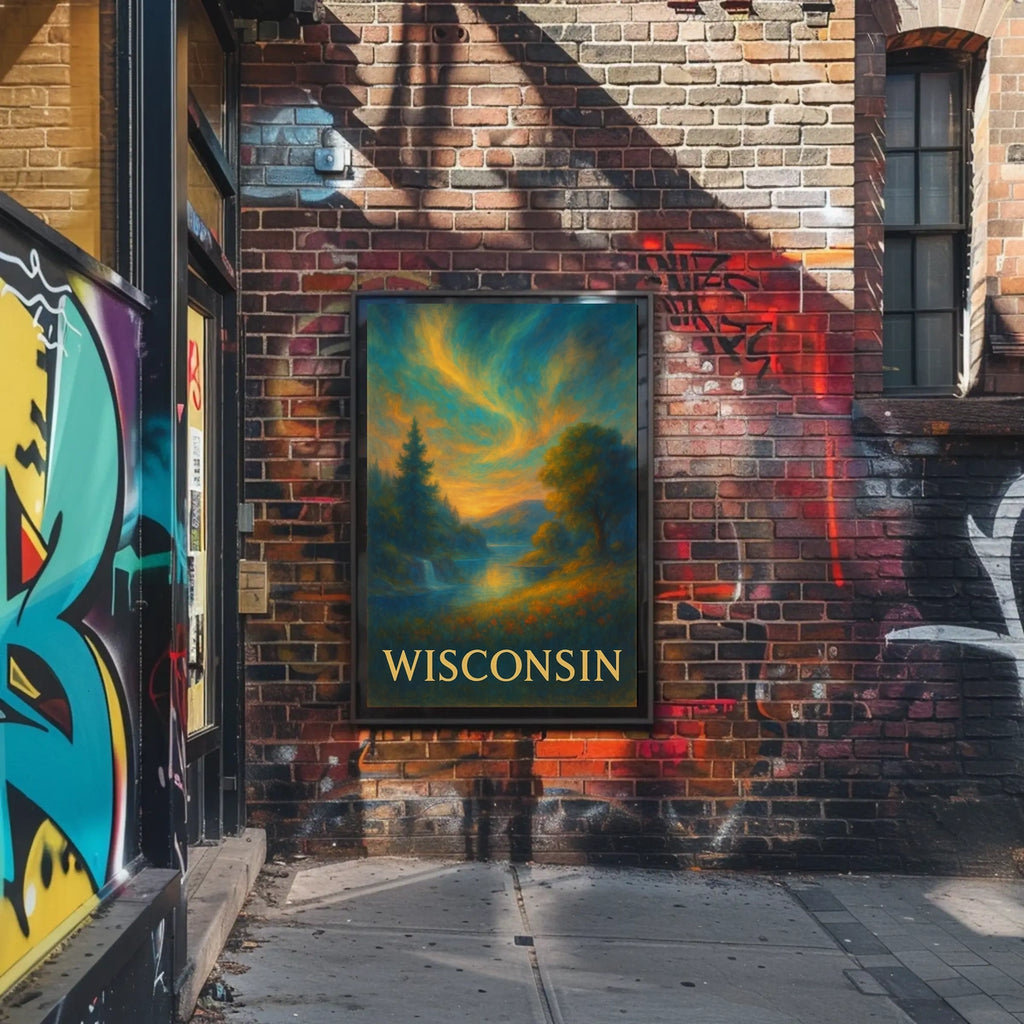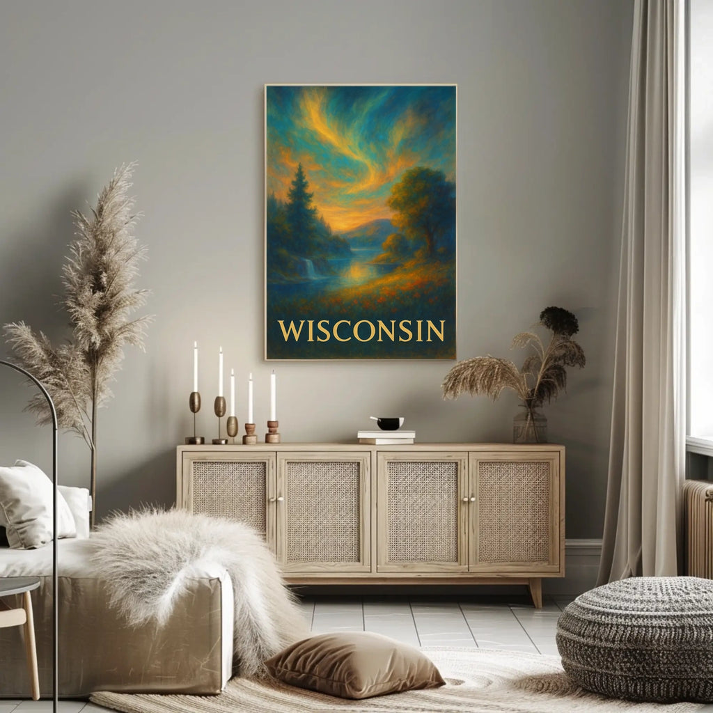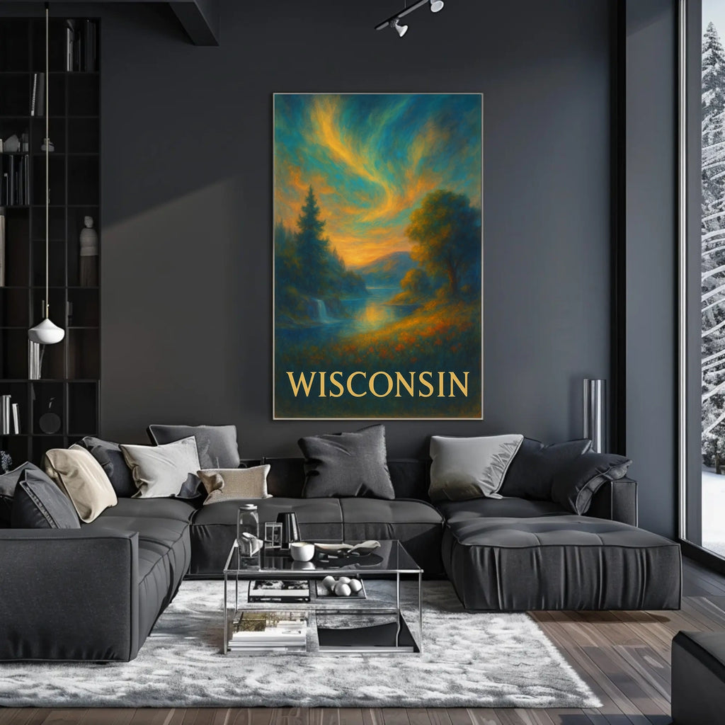 Hang this poster in living rooms, bedrooms, offices, or study spaces to bring warmth, character, and a touch of exploration to your environment. This scenic Wisconsin landscape poster is a versatile centerpiece that pairs well with modern, rustic, or traditional decor—and it makes a thoughtful gift for anyone who loves art, travel, and the outdoors.