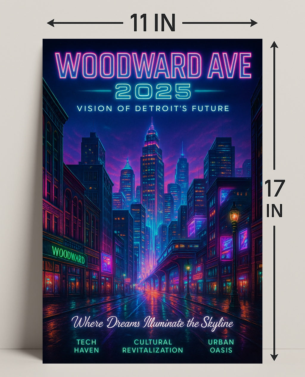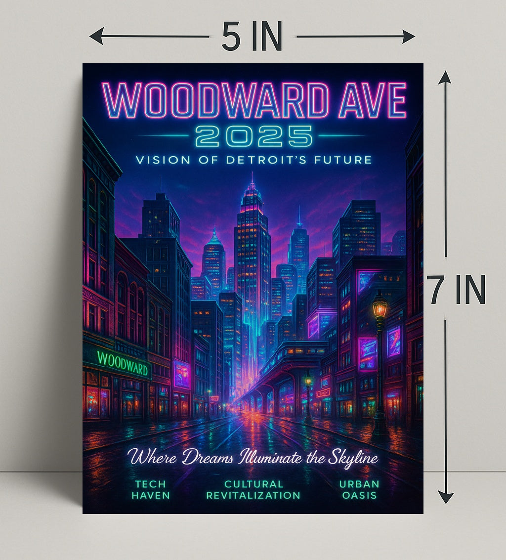 Bring the future home—add the Woodward Ave 2025 Vision of Detroit's Future poster to your cart today and transform your space with a radiant, optimistic skyline from PosterGoat.