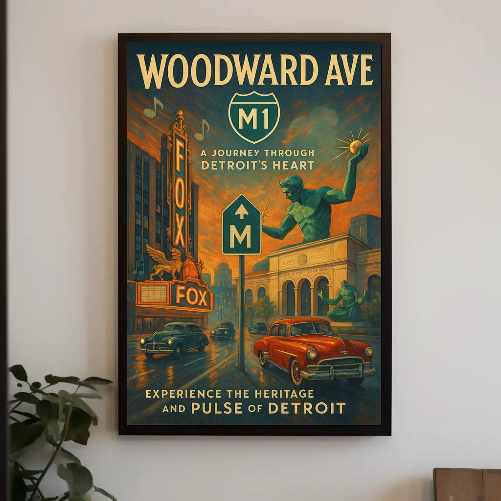 Bring a slice of Woodward Avenue into your space. Add this PosterGoat exclusive to your cart today and transform your wall with a journey through Detroit’s heart.
